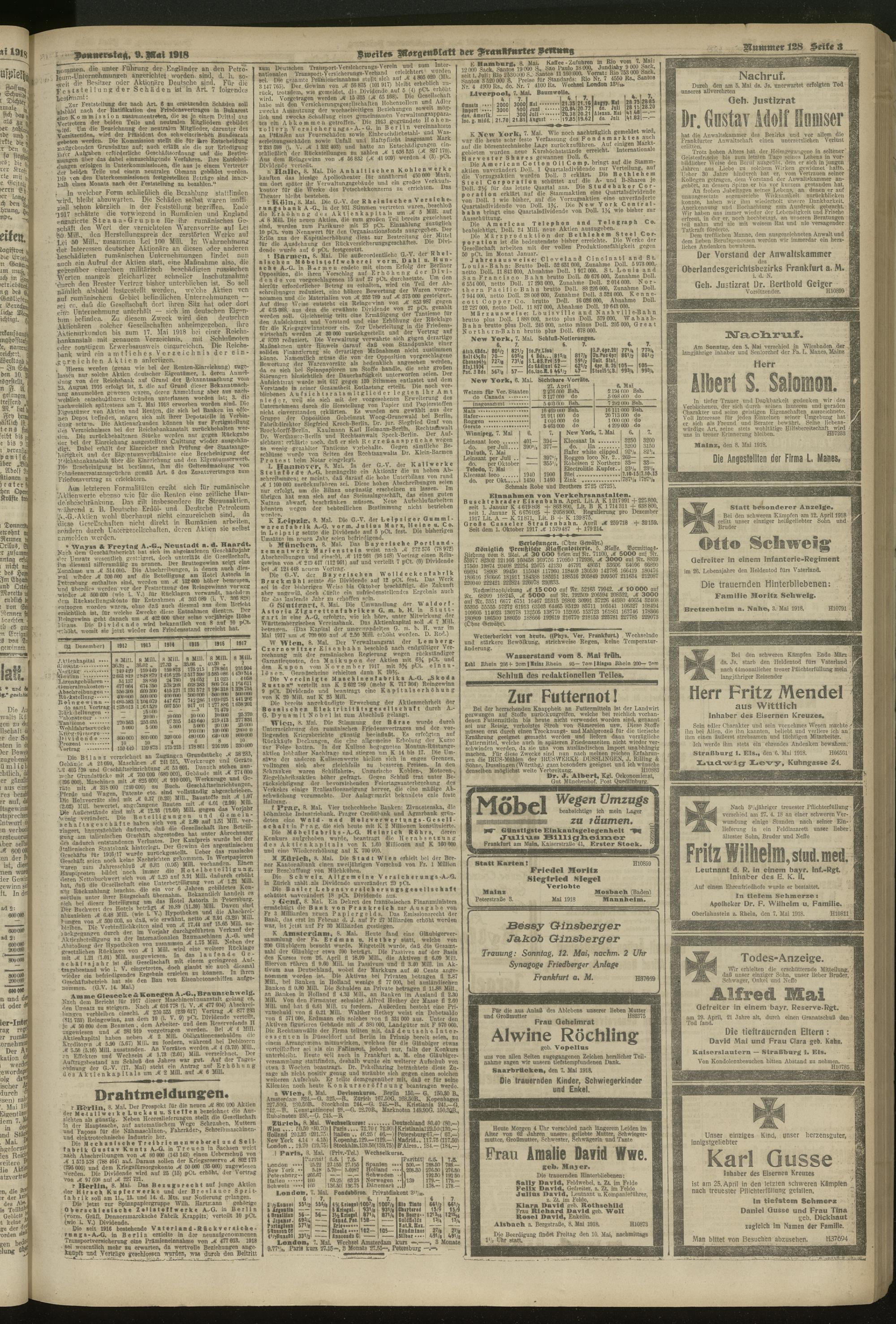 09.05.1918 = Nr. 128. Zweites Morgenblatt