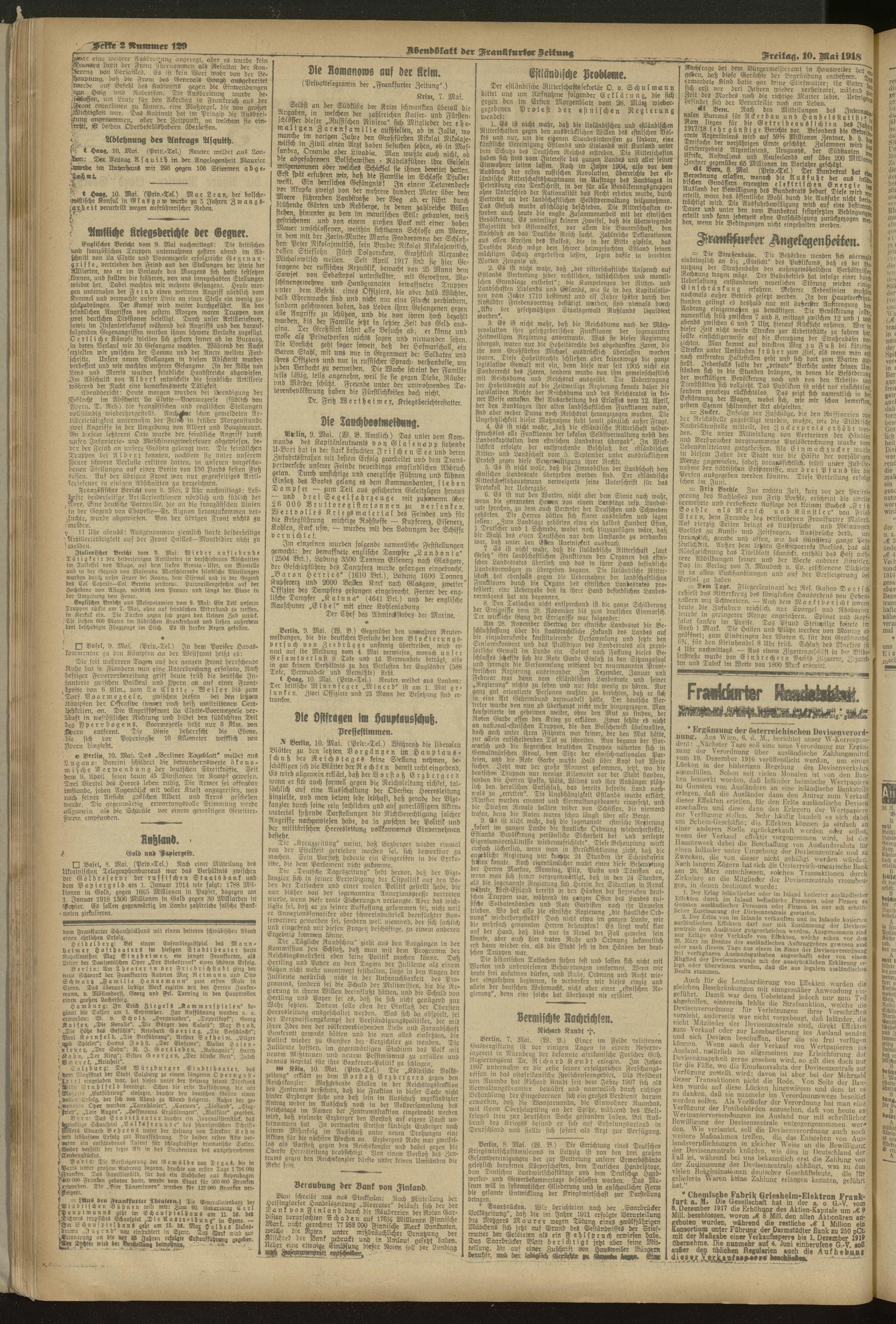 10.05.1918 = Nr. 129. Abendblatt