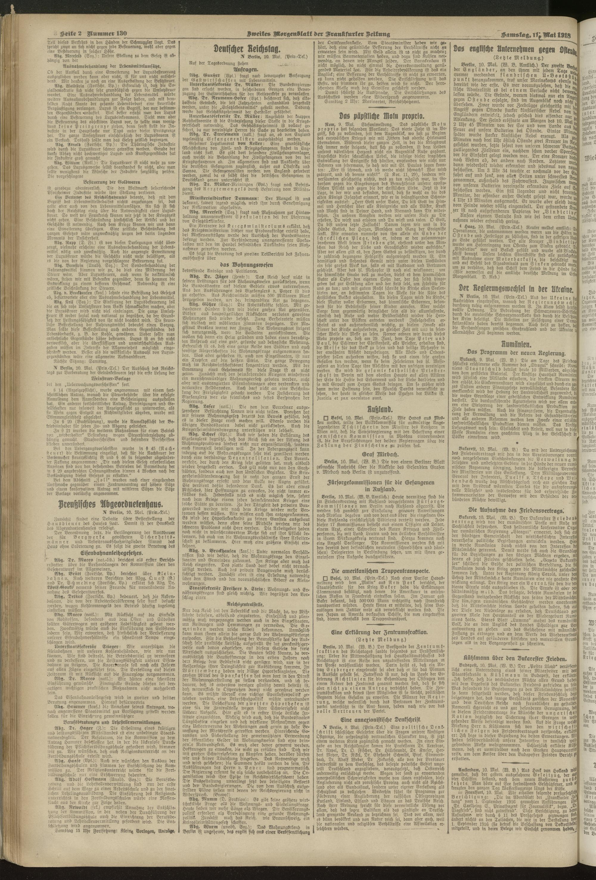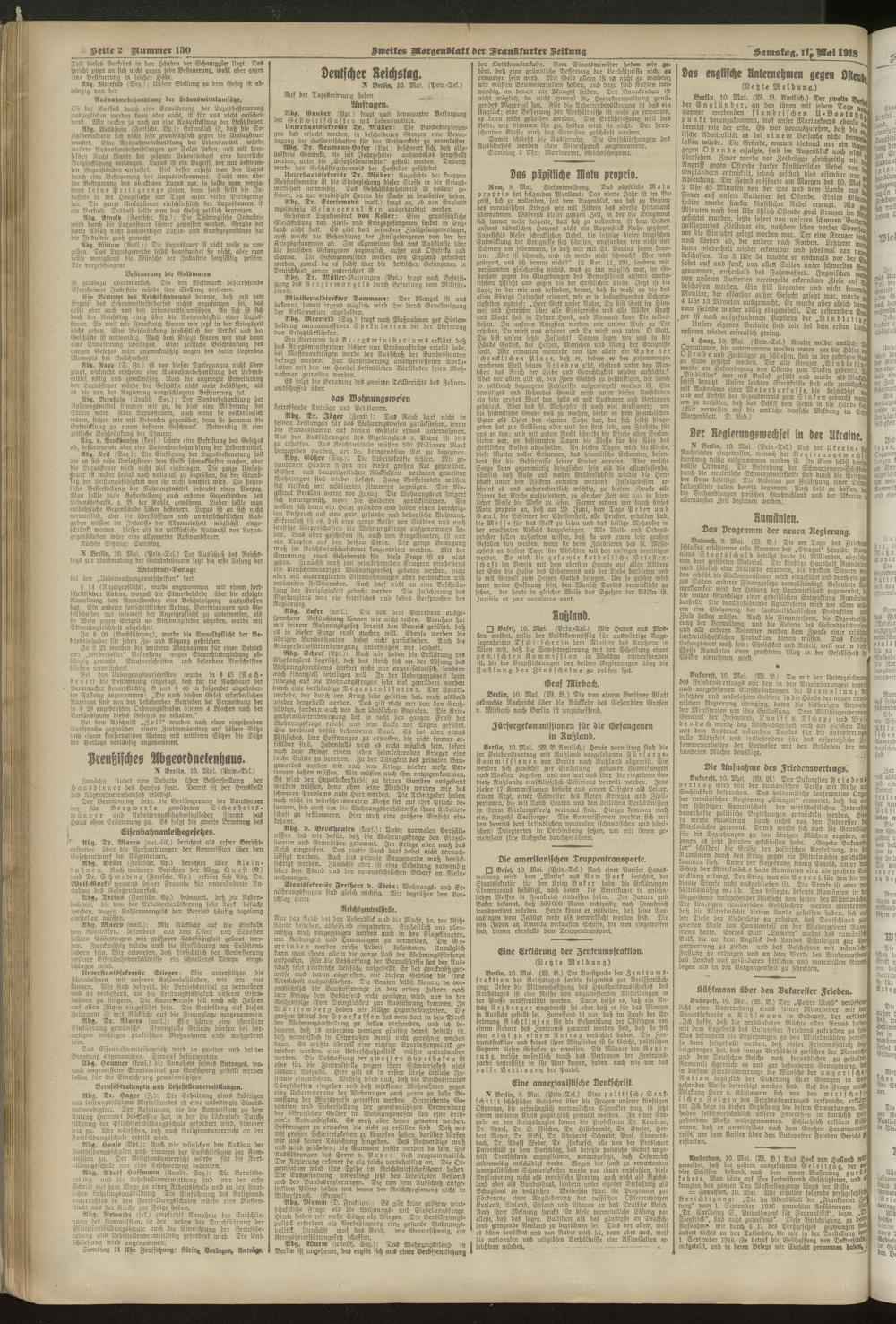 11.05.1918 = Nr. 130. Zweites Morgenblatt
