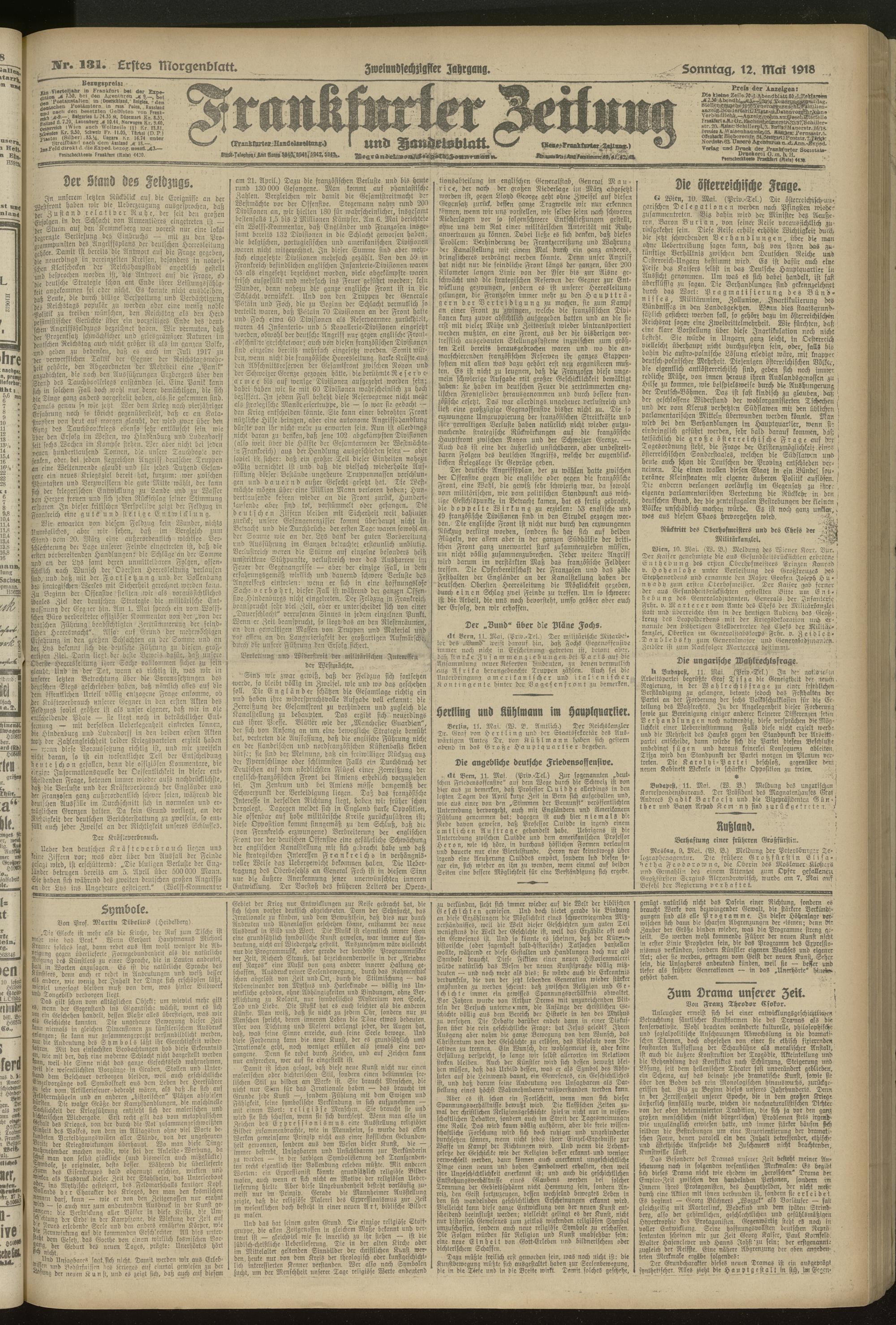 12.05.1918 = Nr. 131. Erstes Morgenblatt