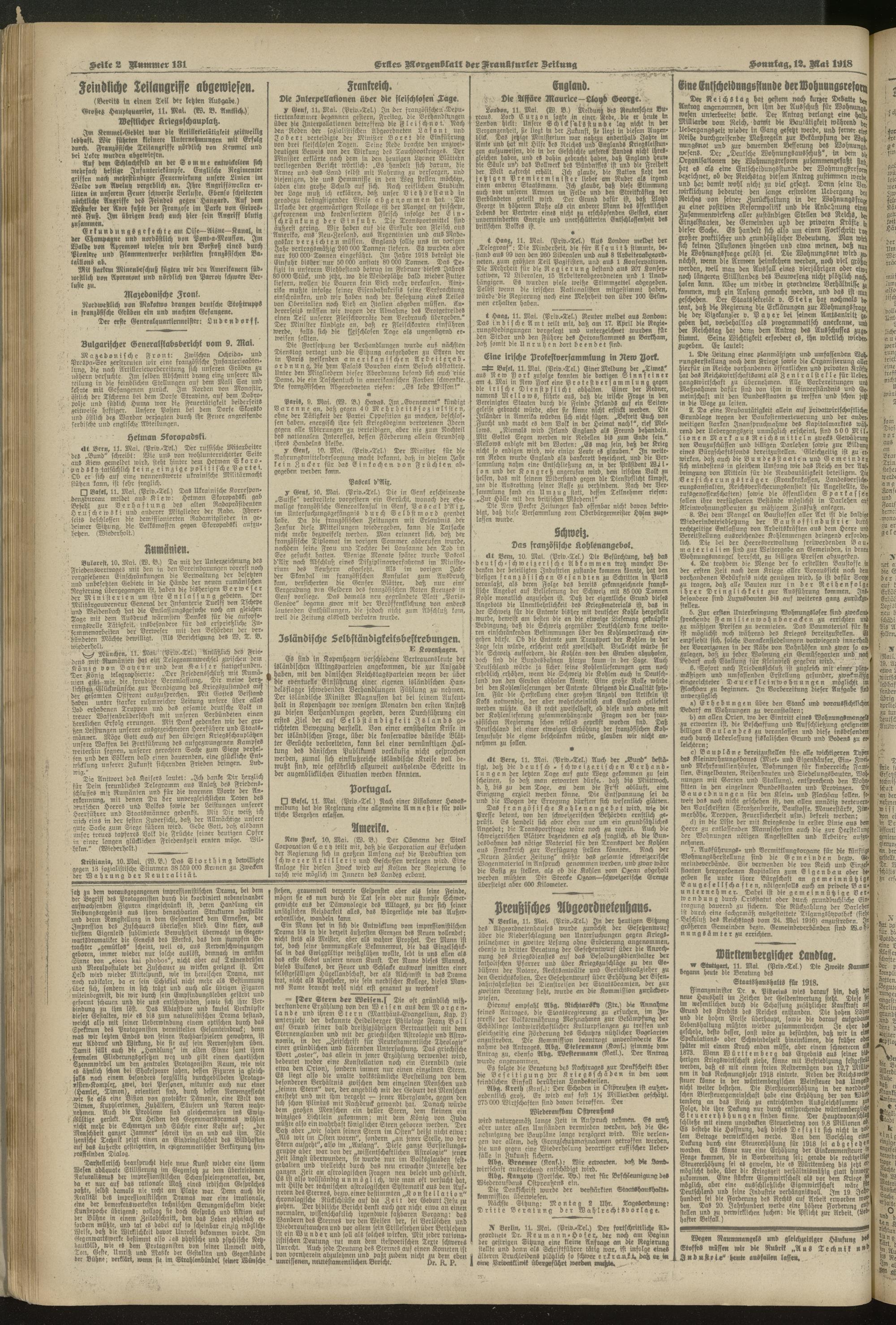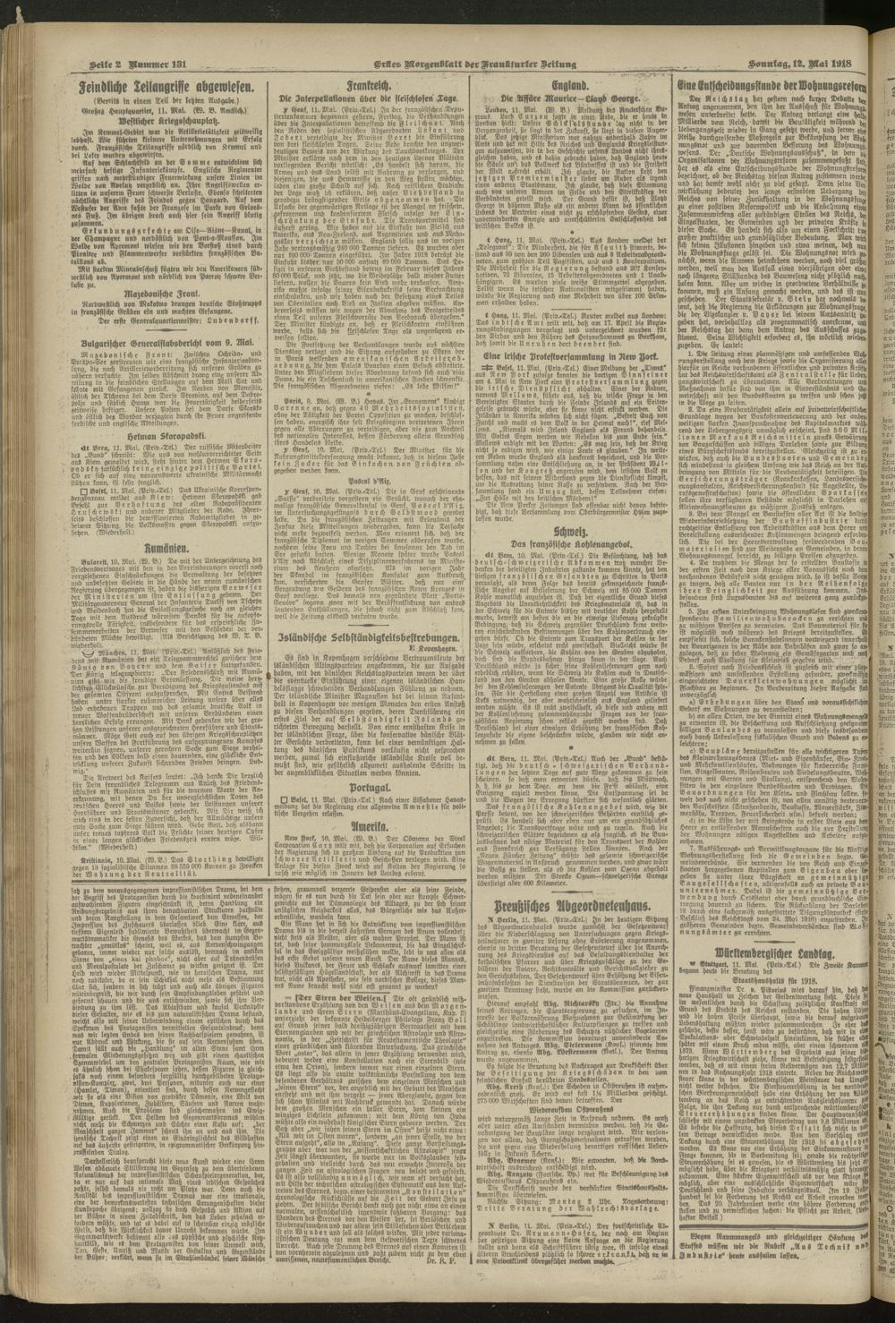 12.05.1918 = Nr. 131. Erstes Morgenblatt