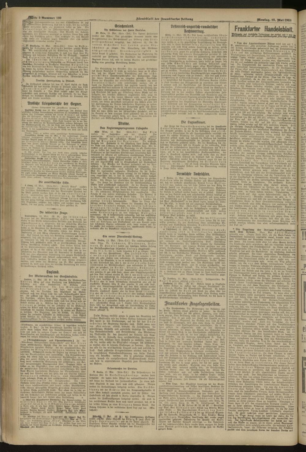13.05.1918 = Nr. 132. Abendblatt