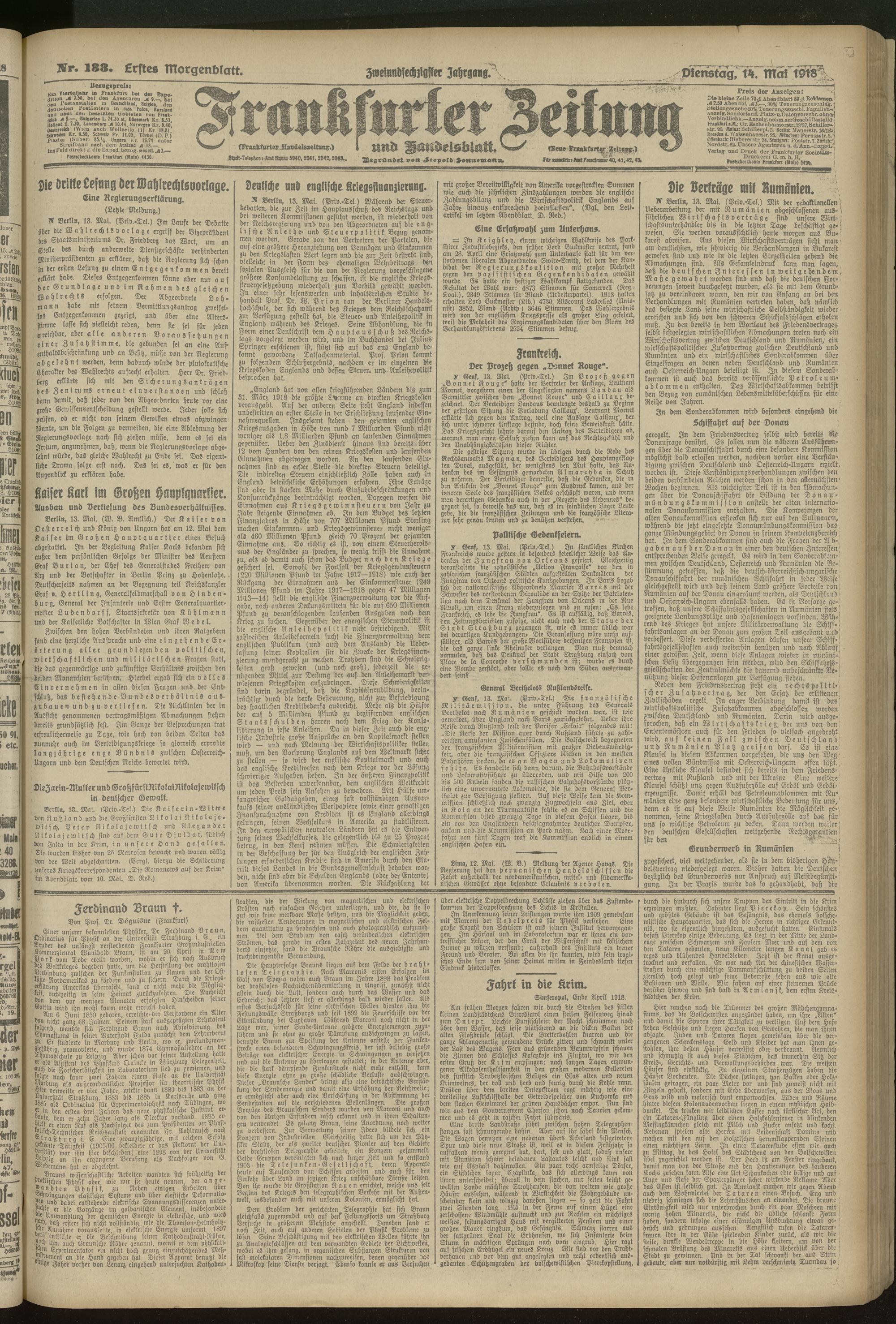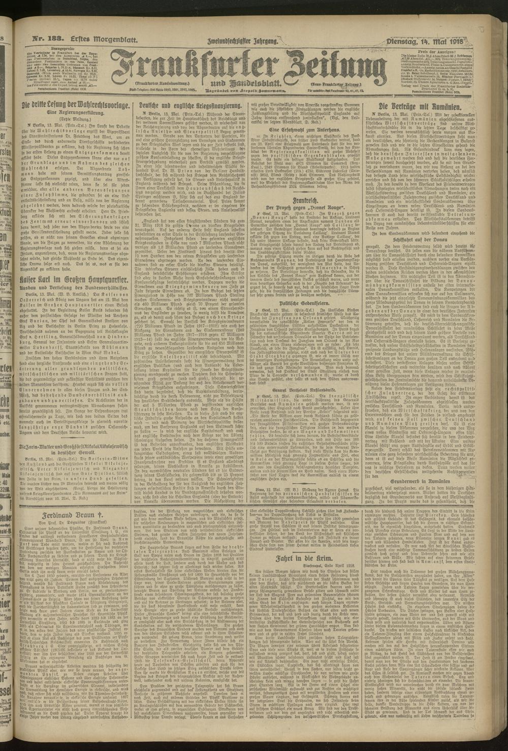 14.05.1918 = Nr. 133. Erstes Morgenblatt