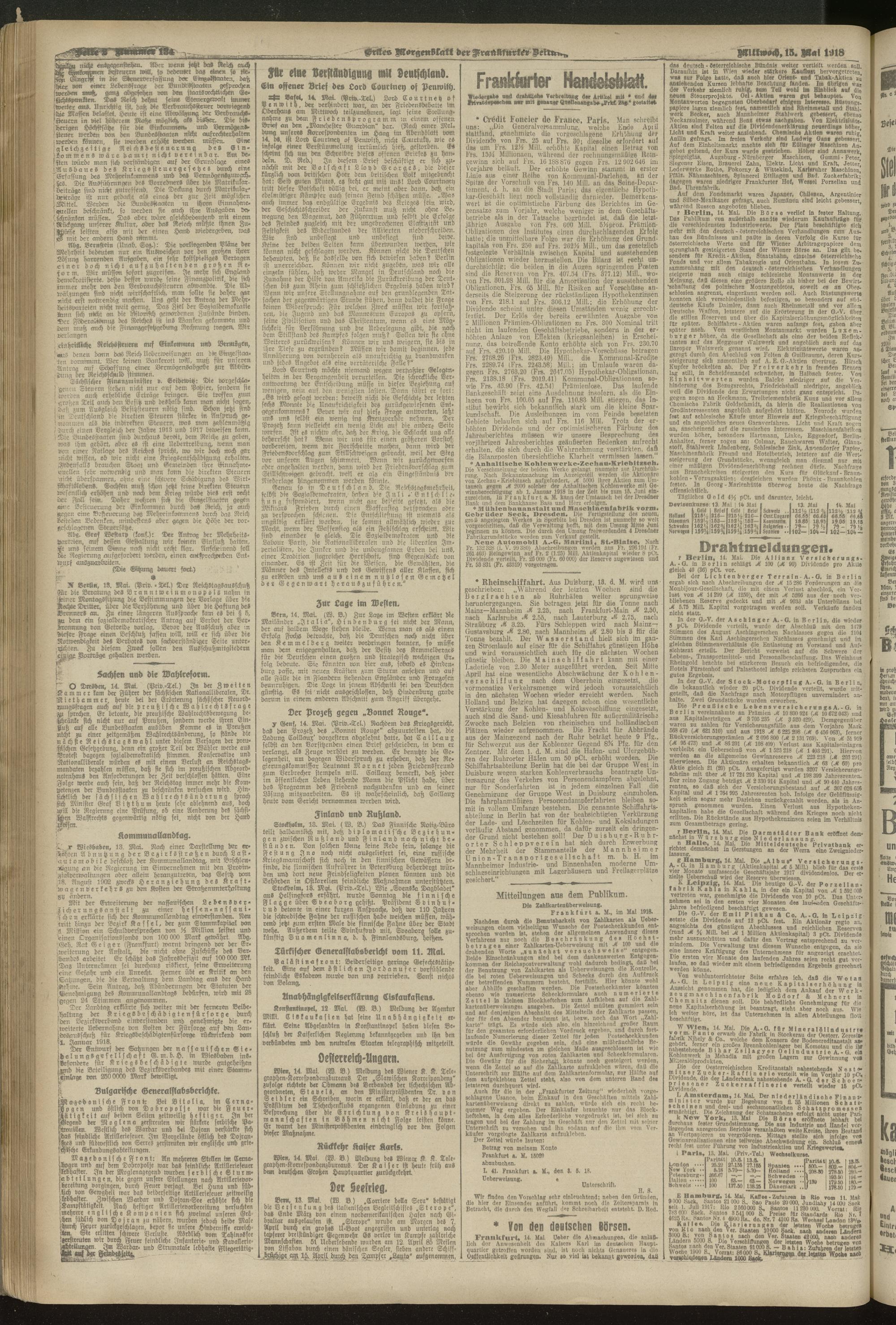 15.05.1918 = Nr. 134. Erstes Morgenblatt