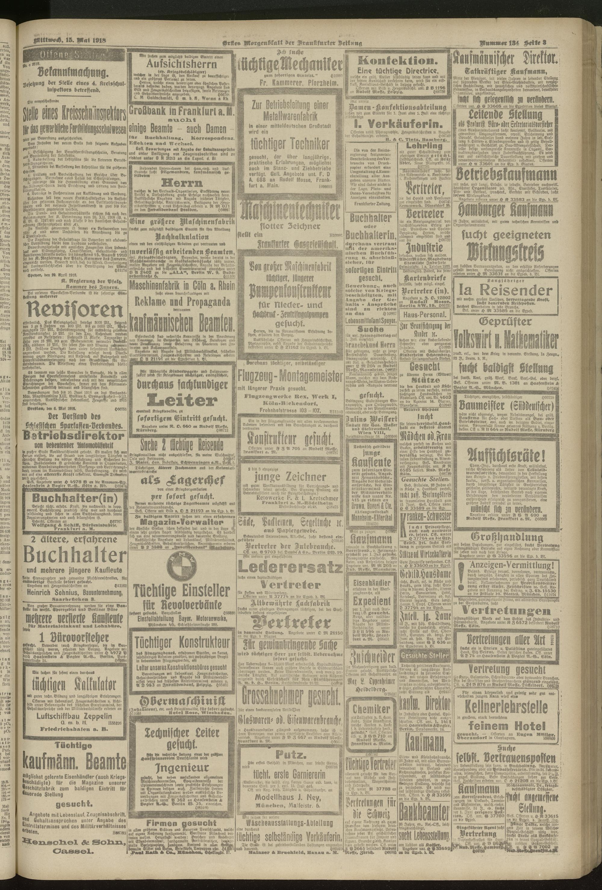 15.05.1918 = Nr. 134. Erstes Morgenblatt