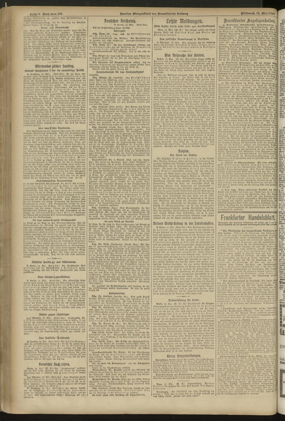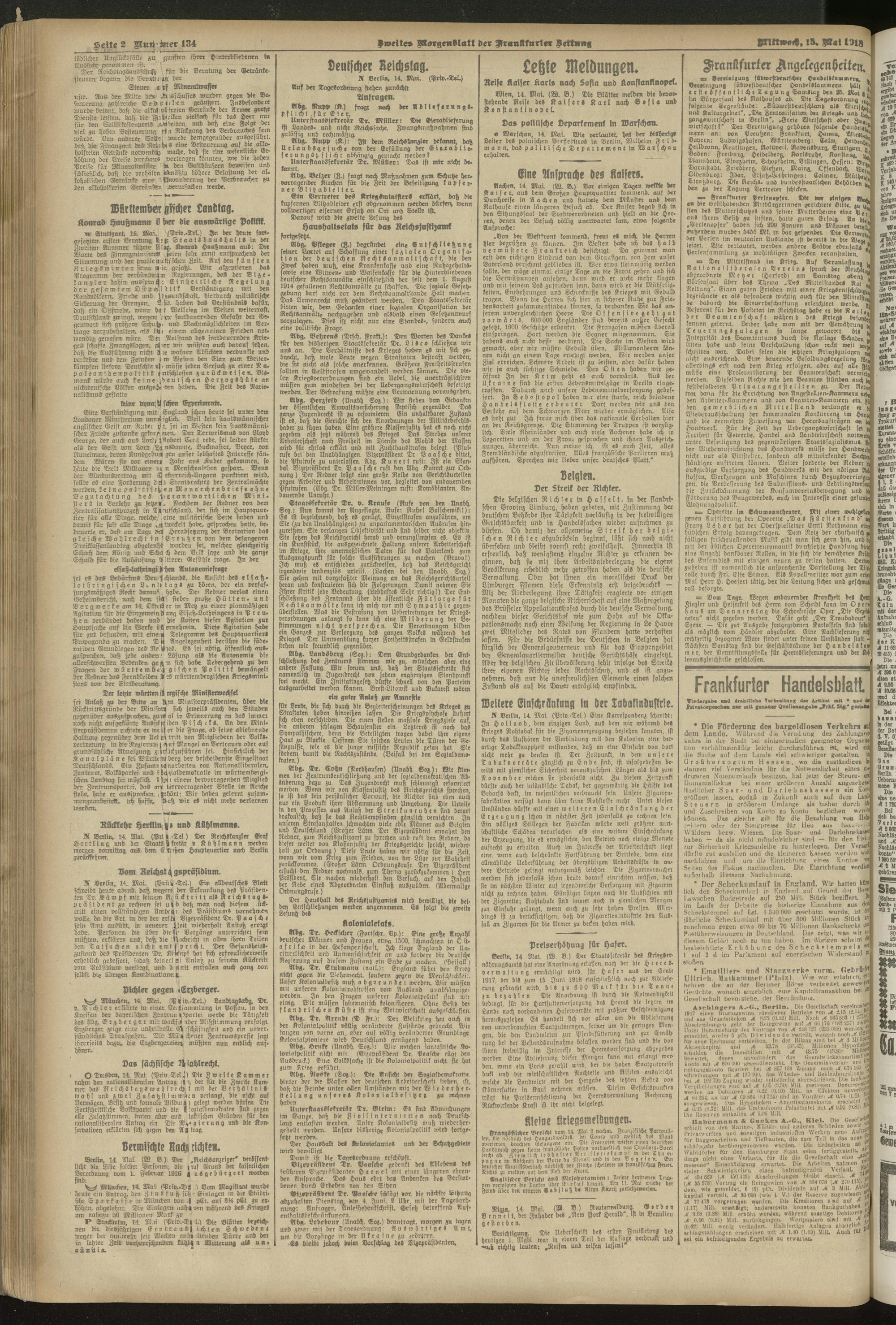 15.05.1918 = Nr. 134. Zweites Morgenblatt