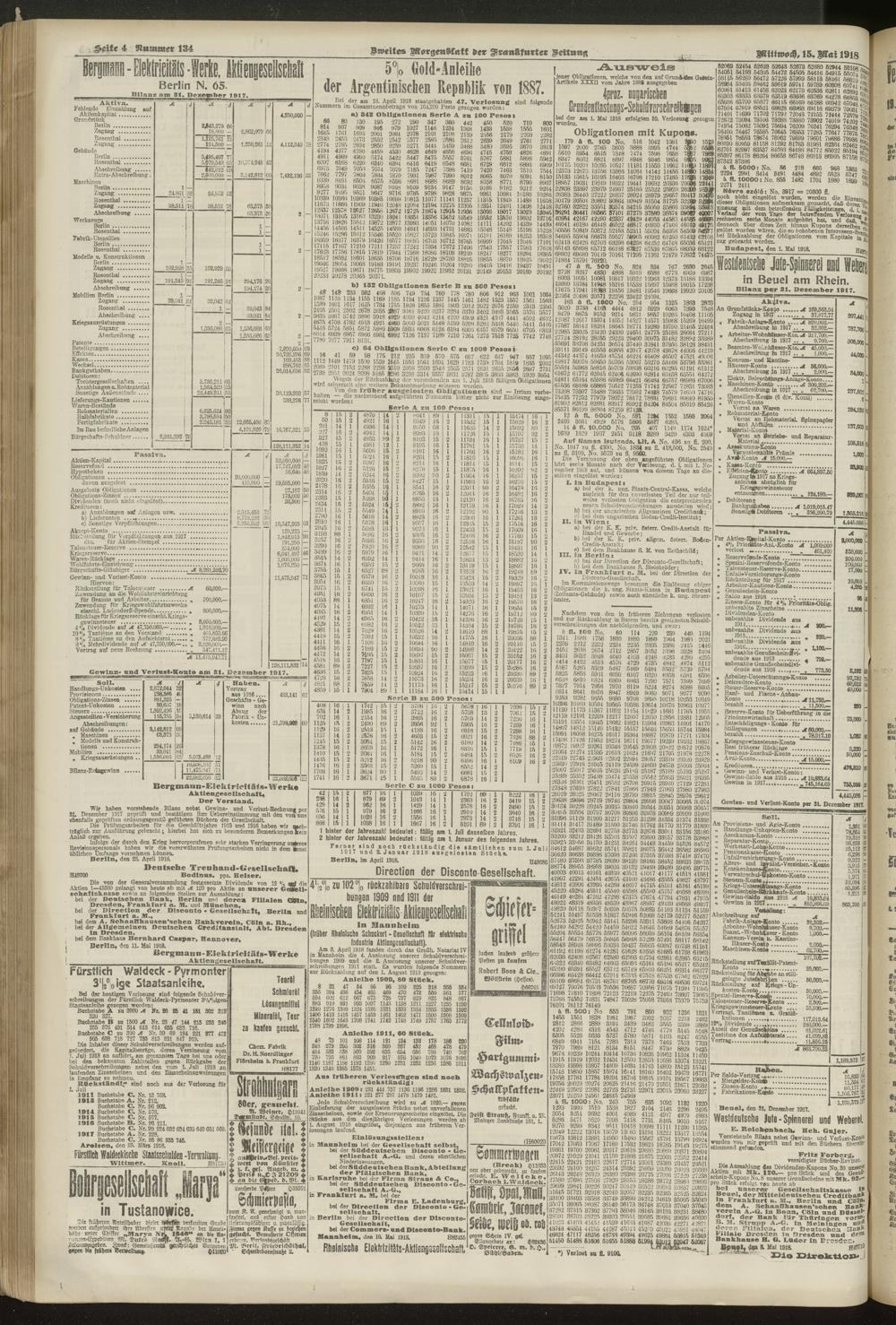 15.05.1918 = Nr. 134. Zweites Morgenblatt