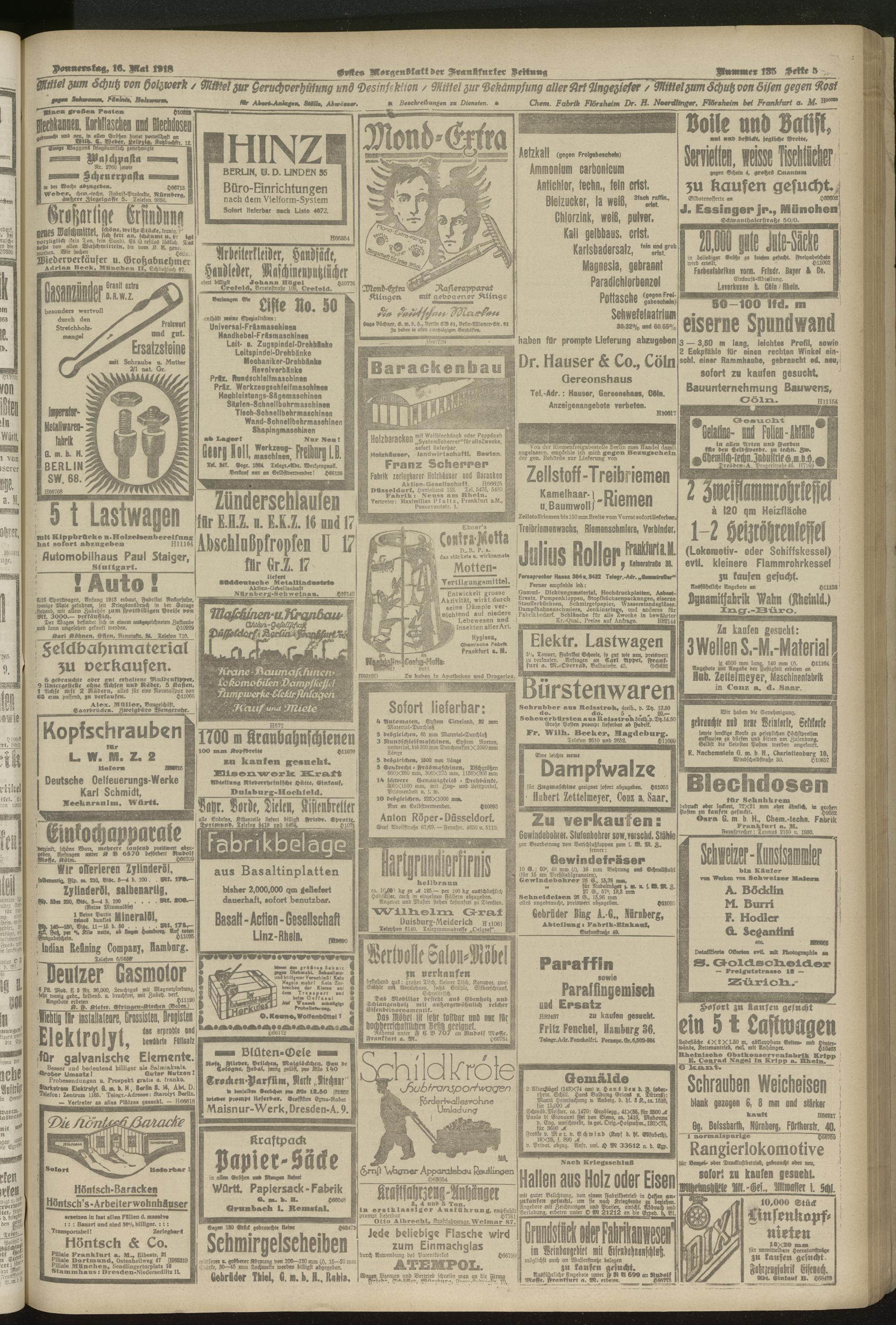 16.05.1918 = Nr. 135. Erstes Morgenblatt