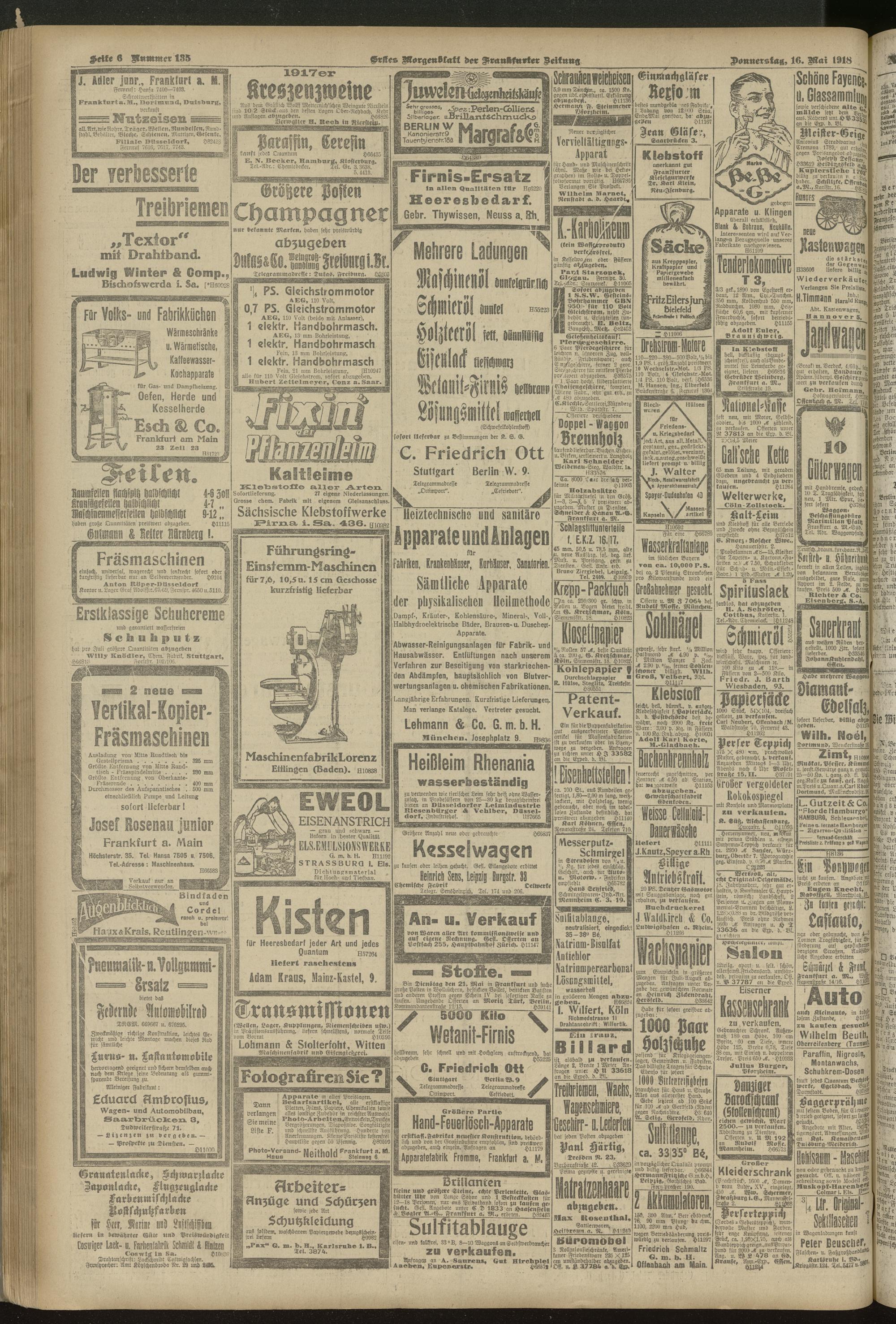 16.05.1918 = Nr. 135. Erstes Morgenblatt