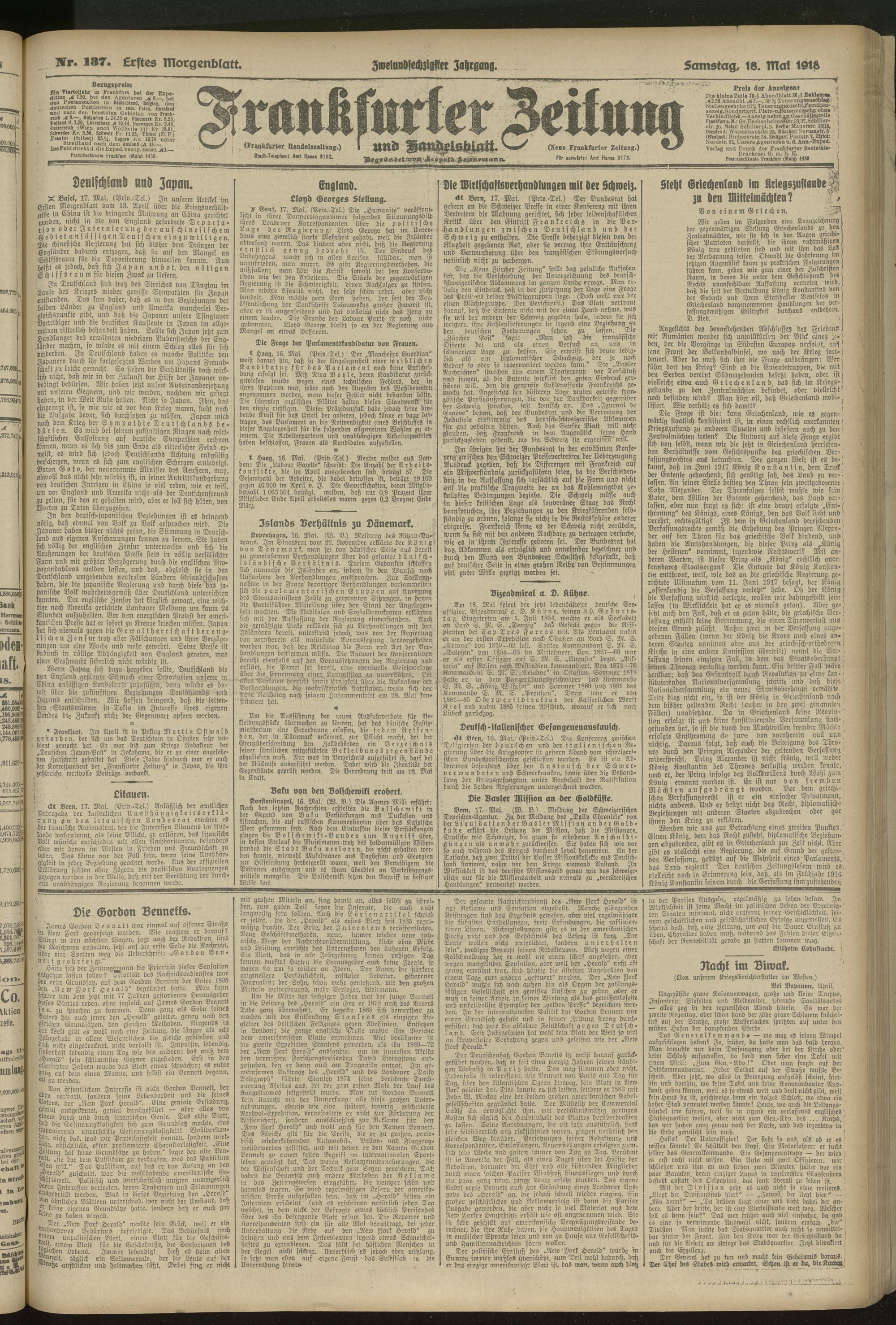 18.05.1918 = Nr. 137. Erstes Morgenblatt