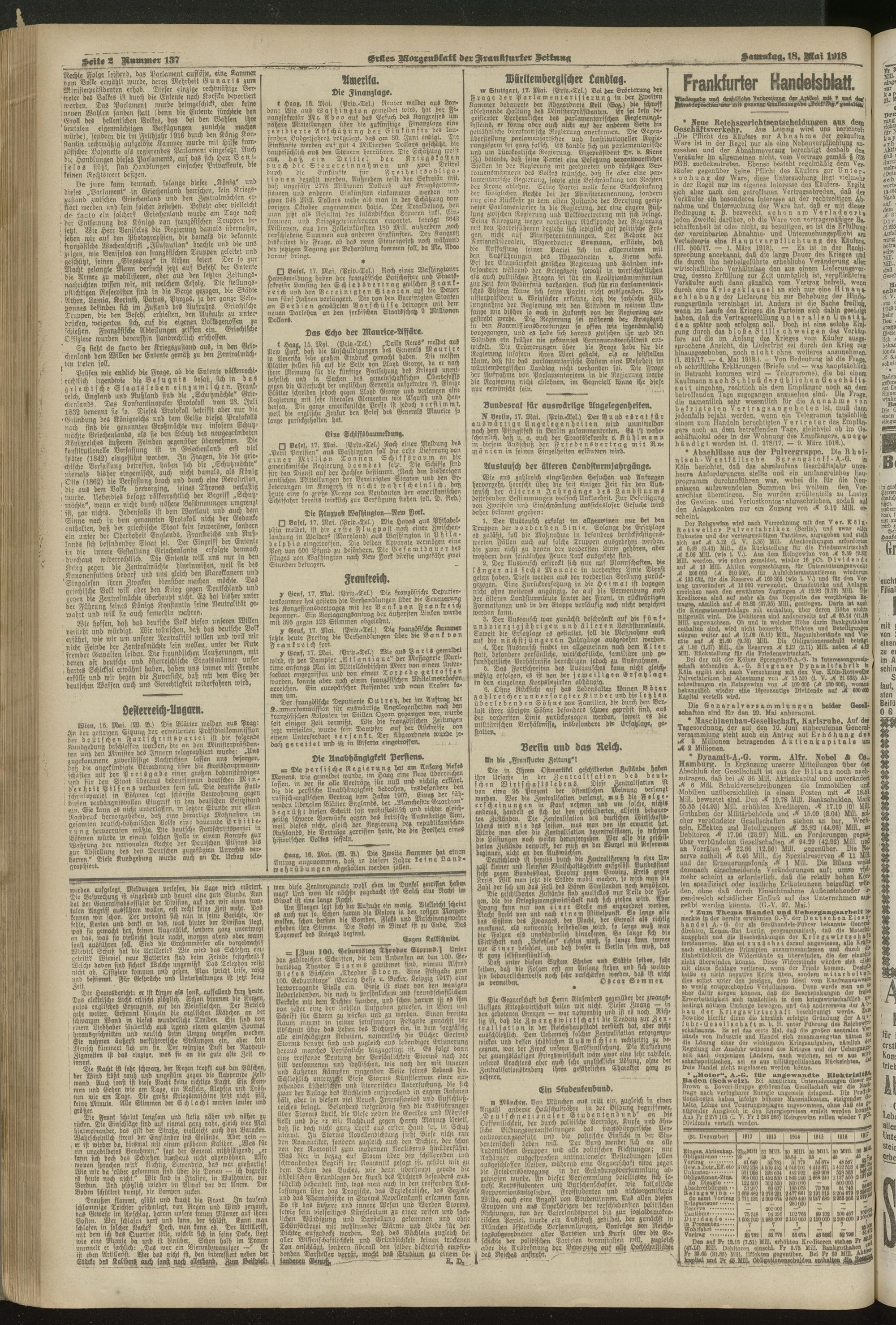 18.05.1918 = Nr. 137. Erstes Morgenblatt