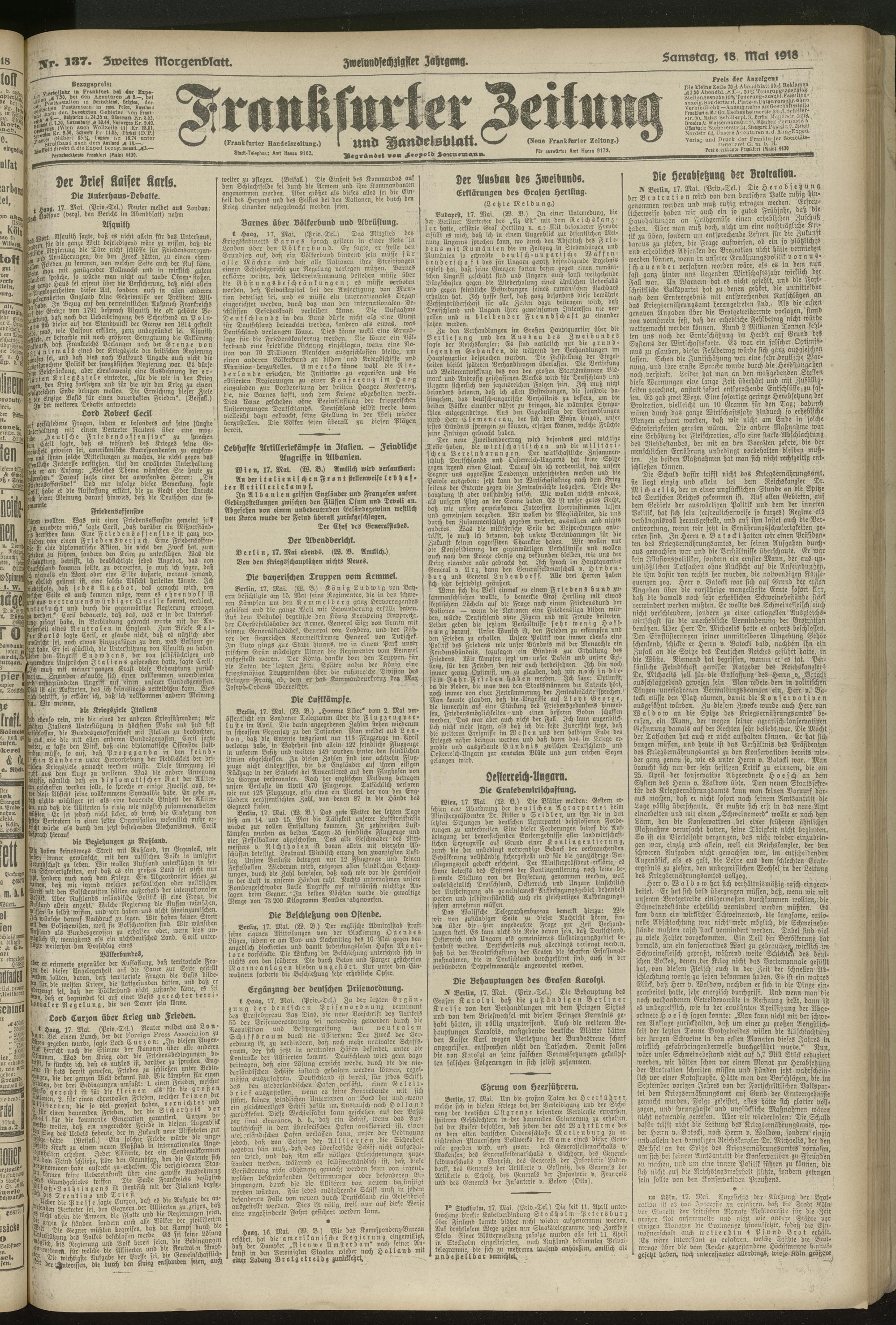 18.05.1918 = Nr. 137. Zweites Morgenblatt