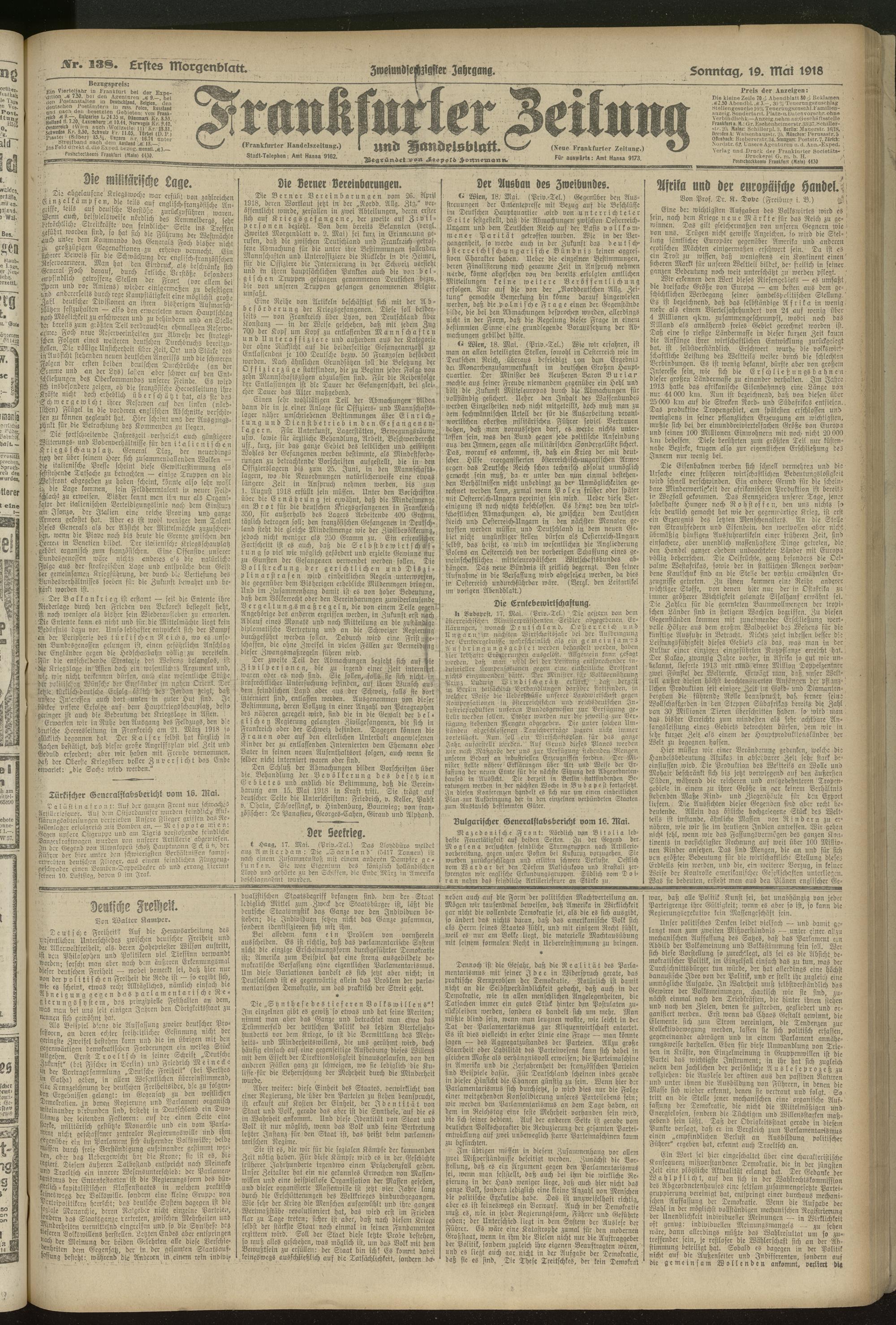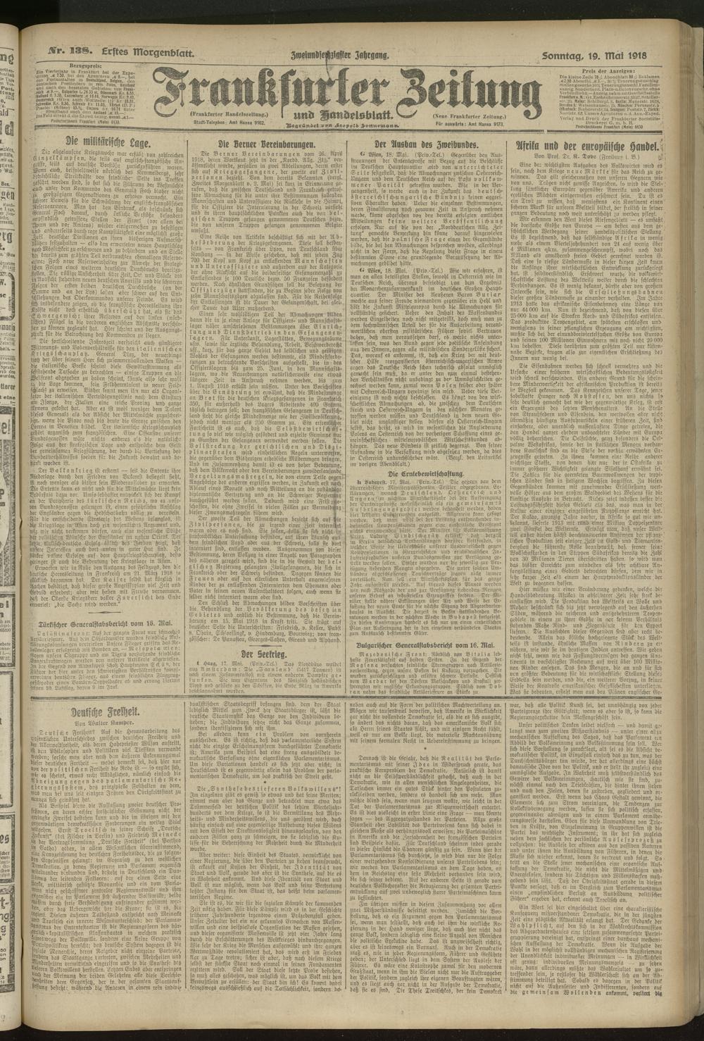 19.05.1918 = Nr. 138. Erstes Morgenblatt