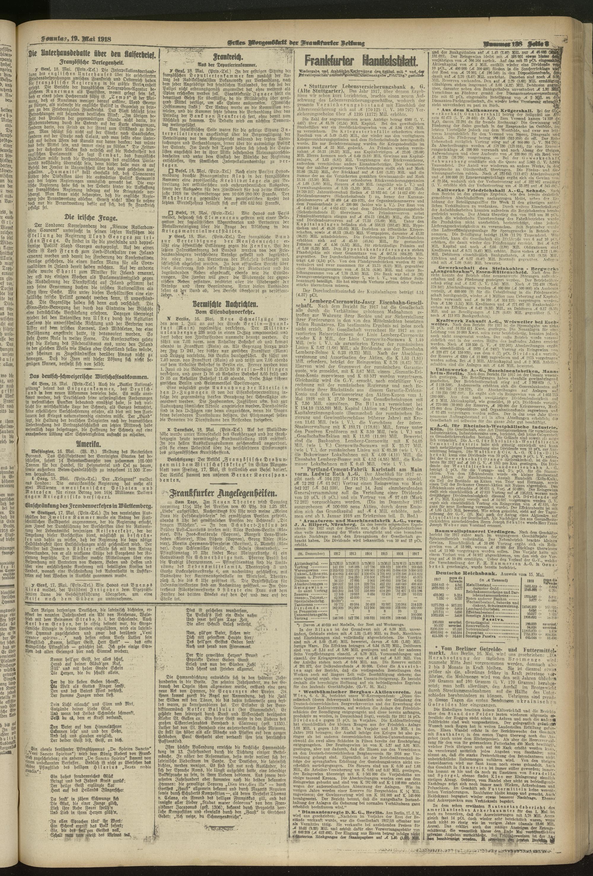 19.05.1918 = Nr. 138. Erstes Morgenblatt