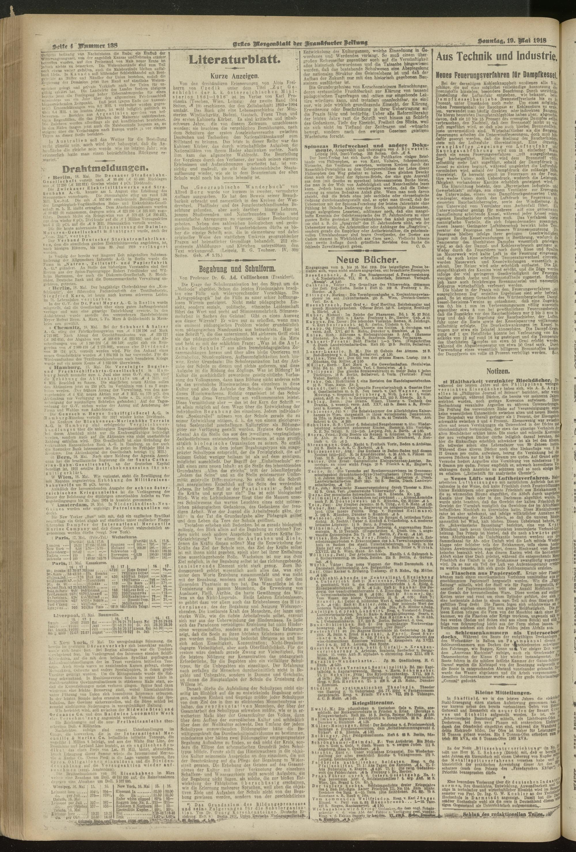 19.05.1918 = Nr. 138. Erstes Morgenblatt