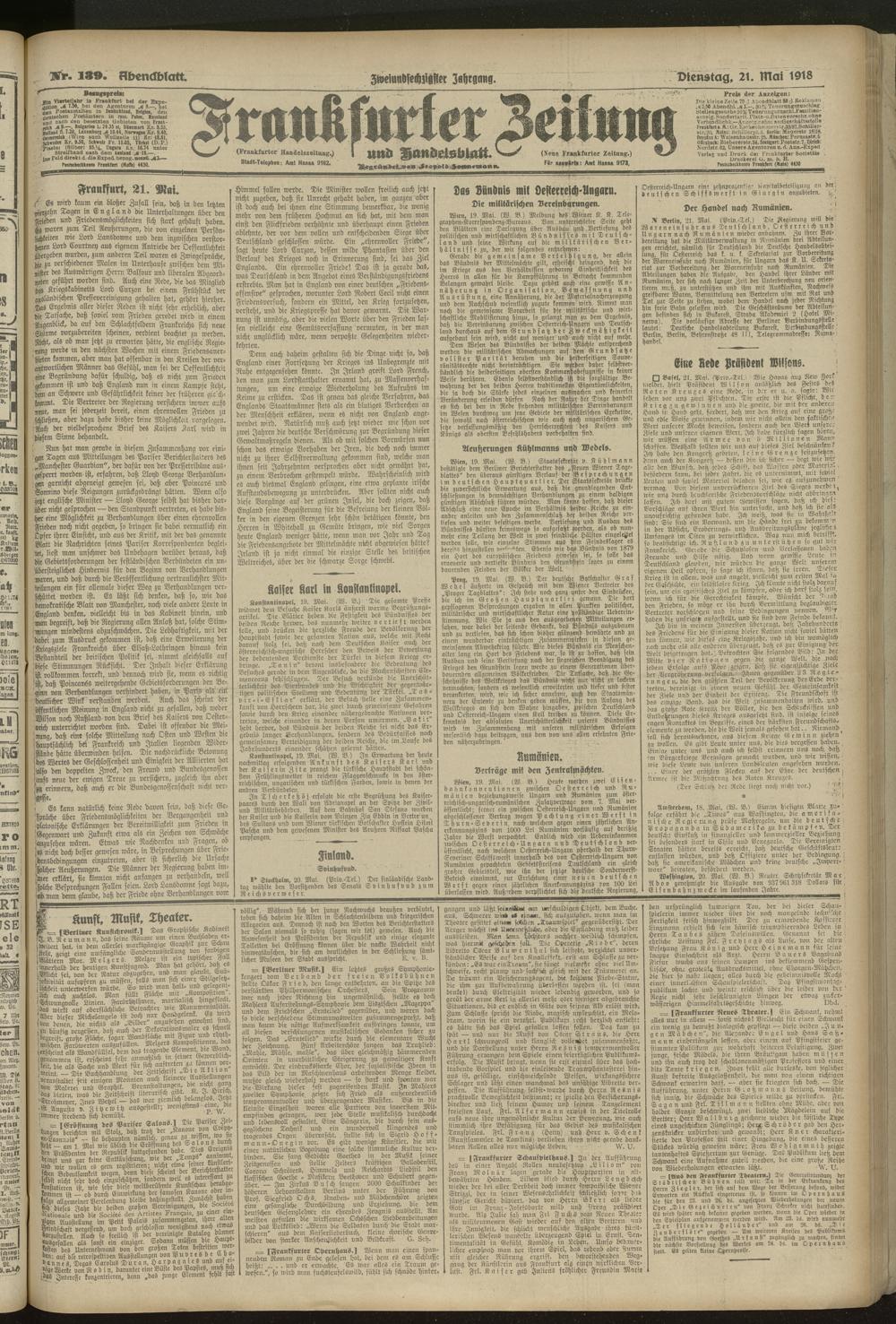 21.05.1918 = Nr. 139. Abendblatt