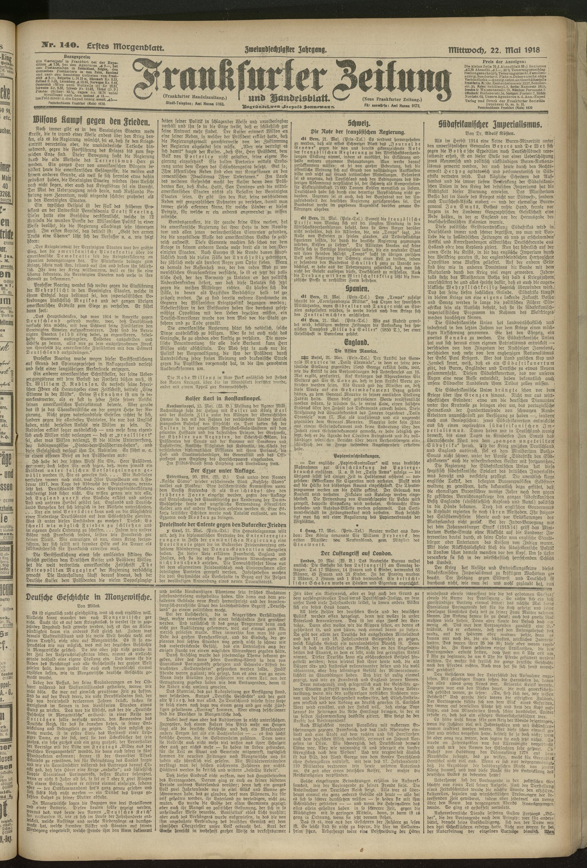 22.05.1918 = Nr. 140. Erstes Morgenblatt