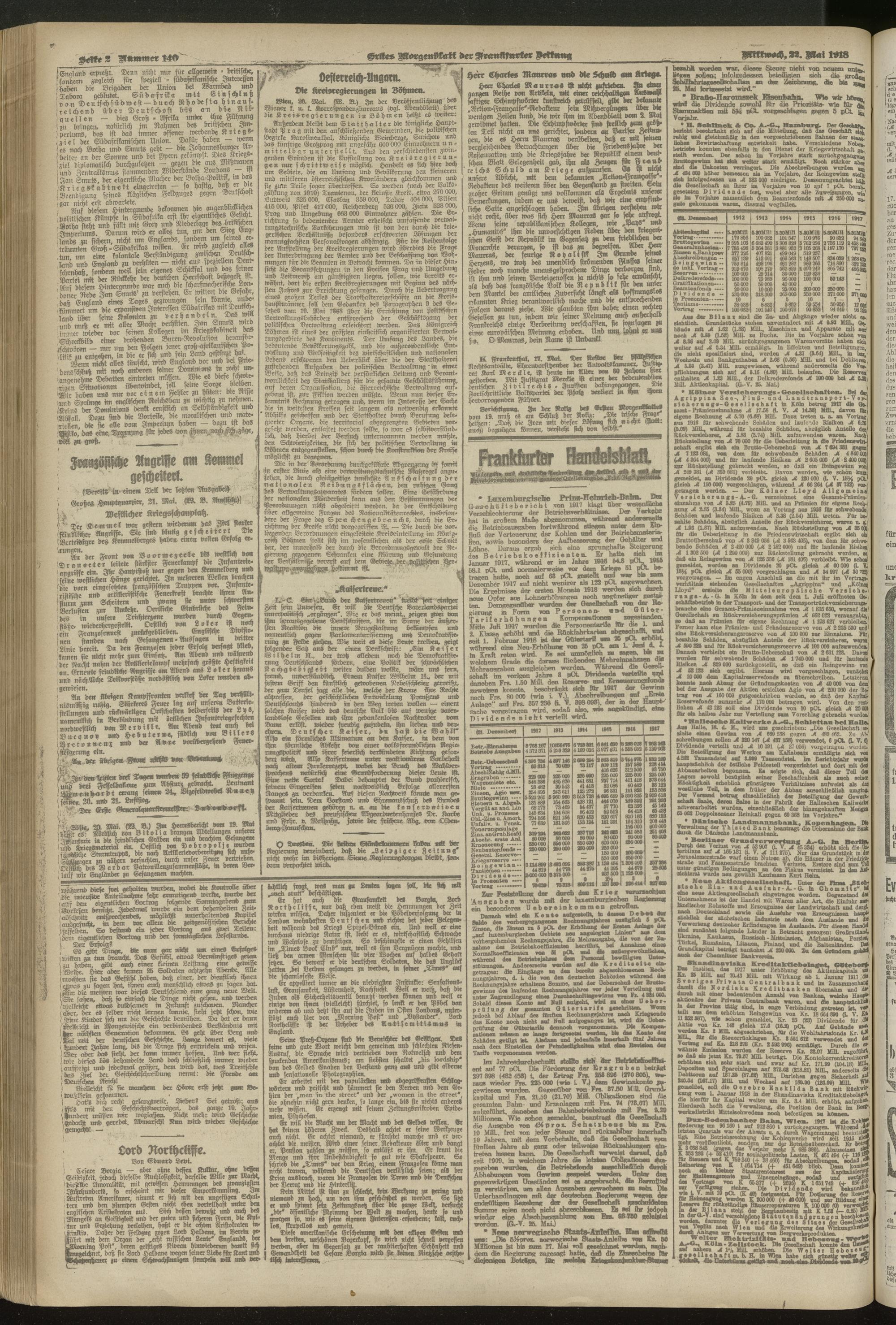 22.05.1918 = Nr. 140. Erstes Morgenblatt