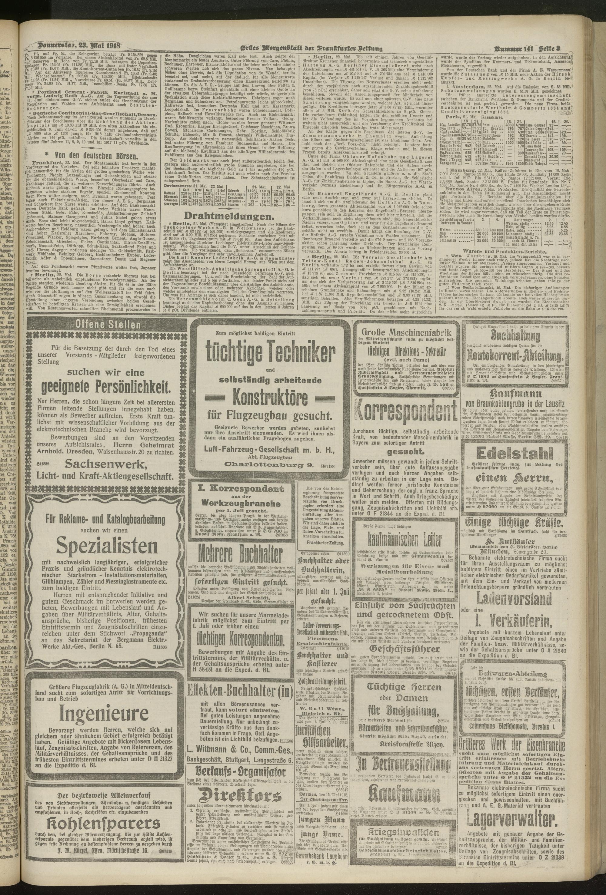 23.05.1918 = Nr. 141. Erstes Morgenblatt