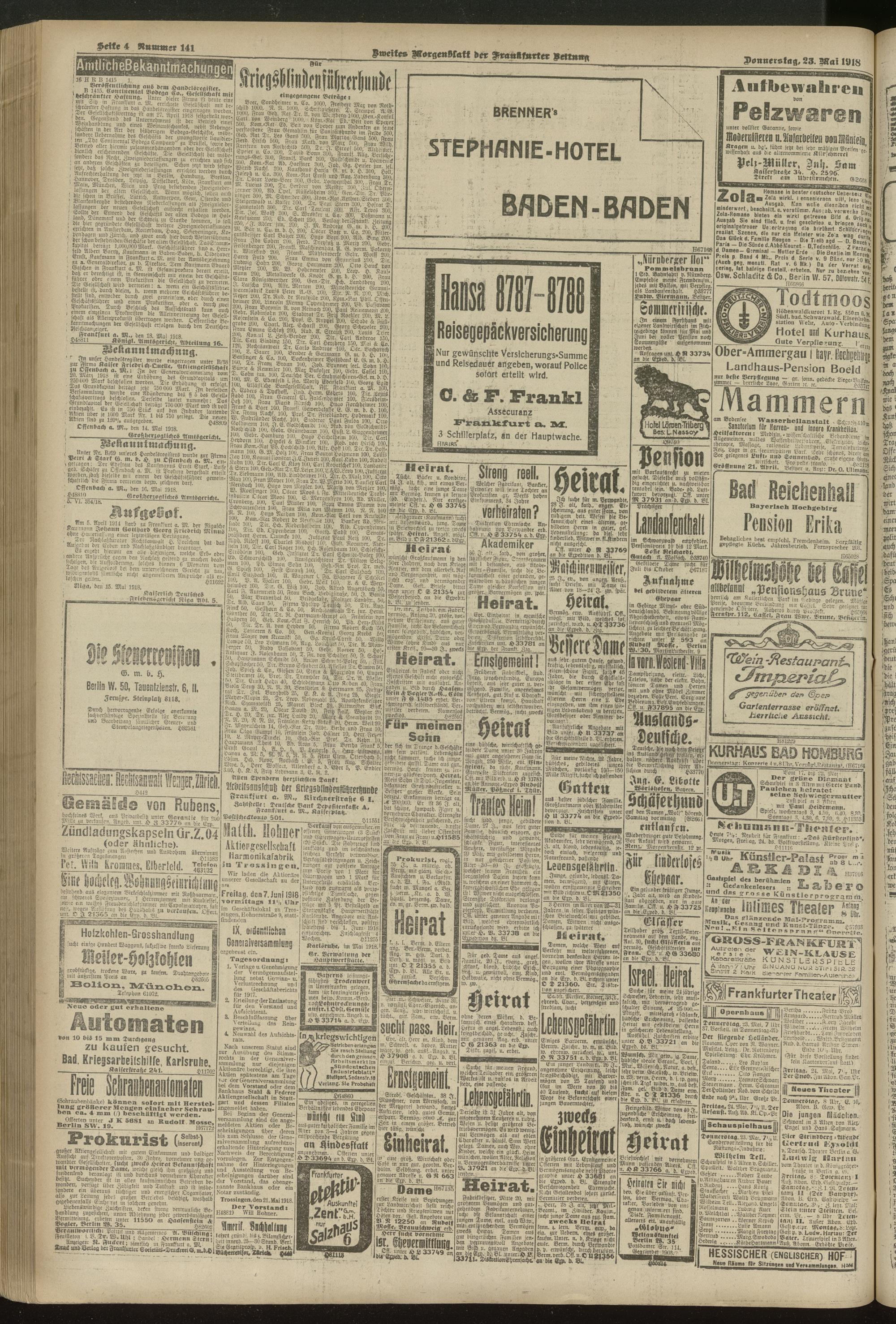 23.05.1918 = Nr. 141. Zweites Morgenblatt