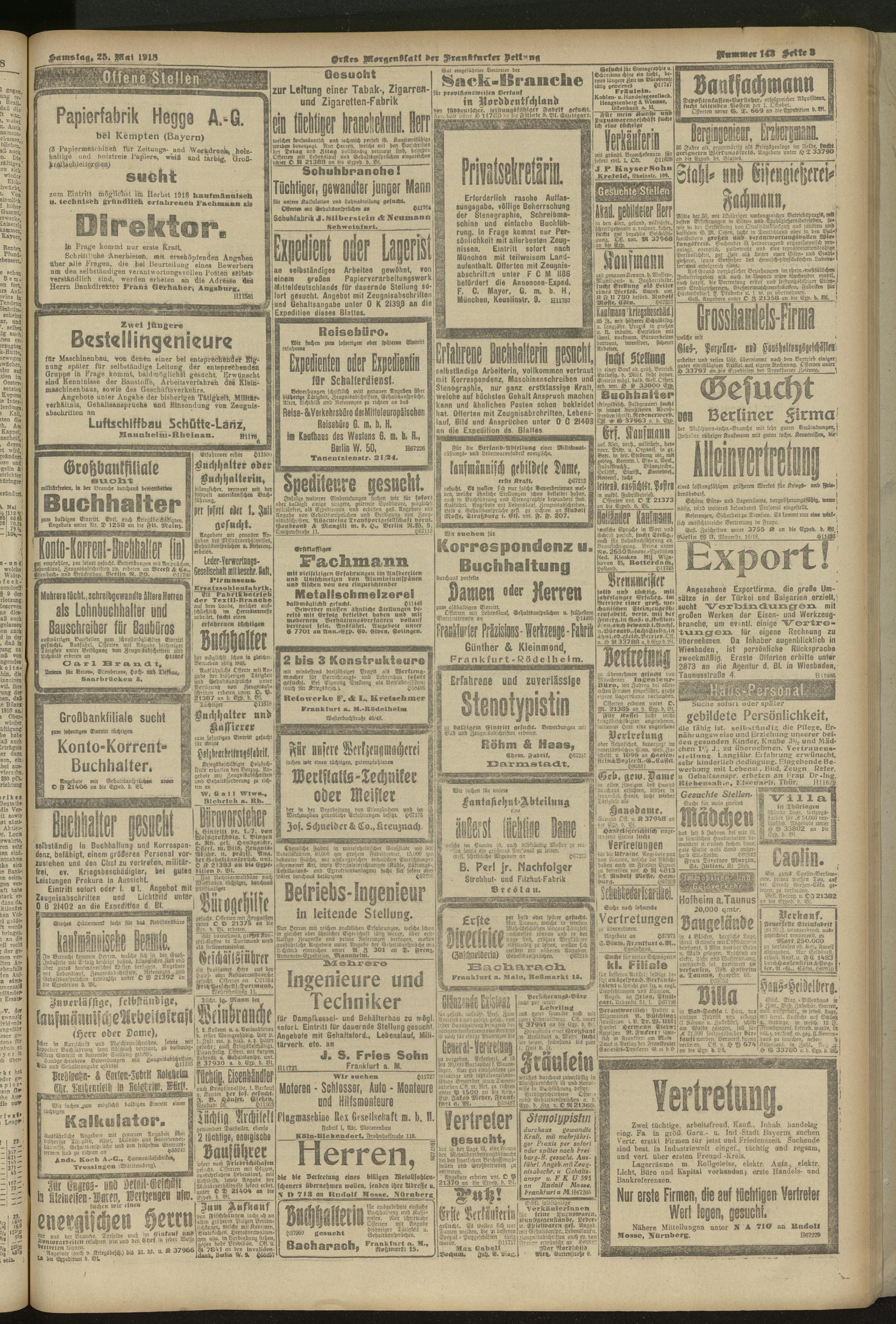 25.05.1918 = Nr. 143. Erstes Morgenblatt