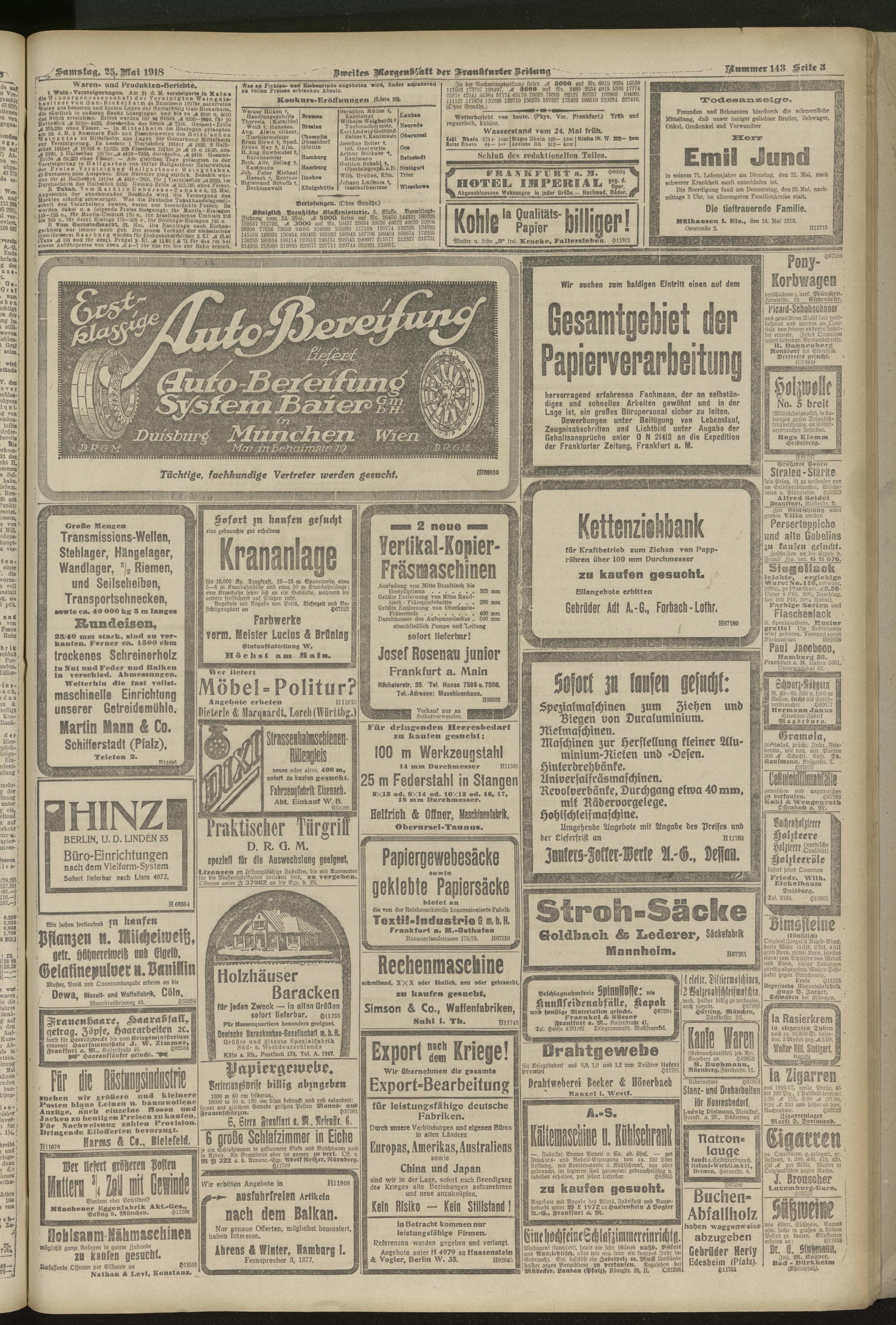25.05.1918 = Nr. 143. Zweites Morgenblatt