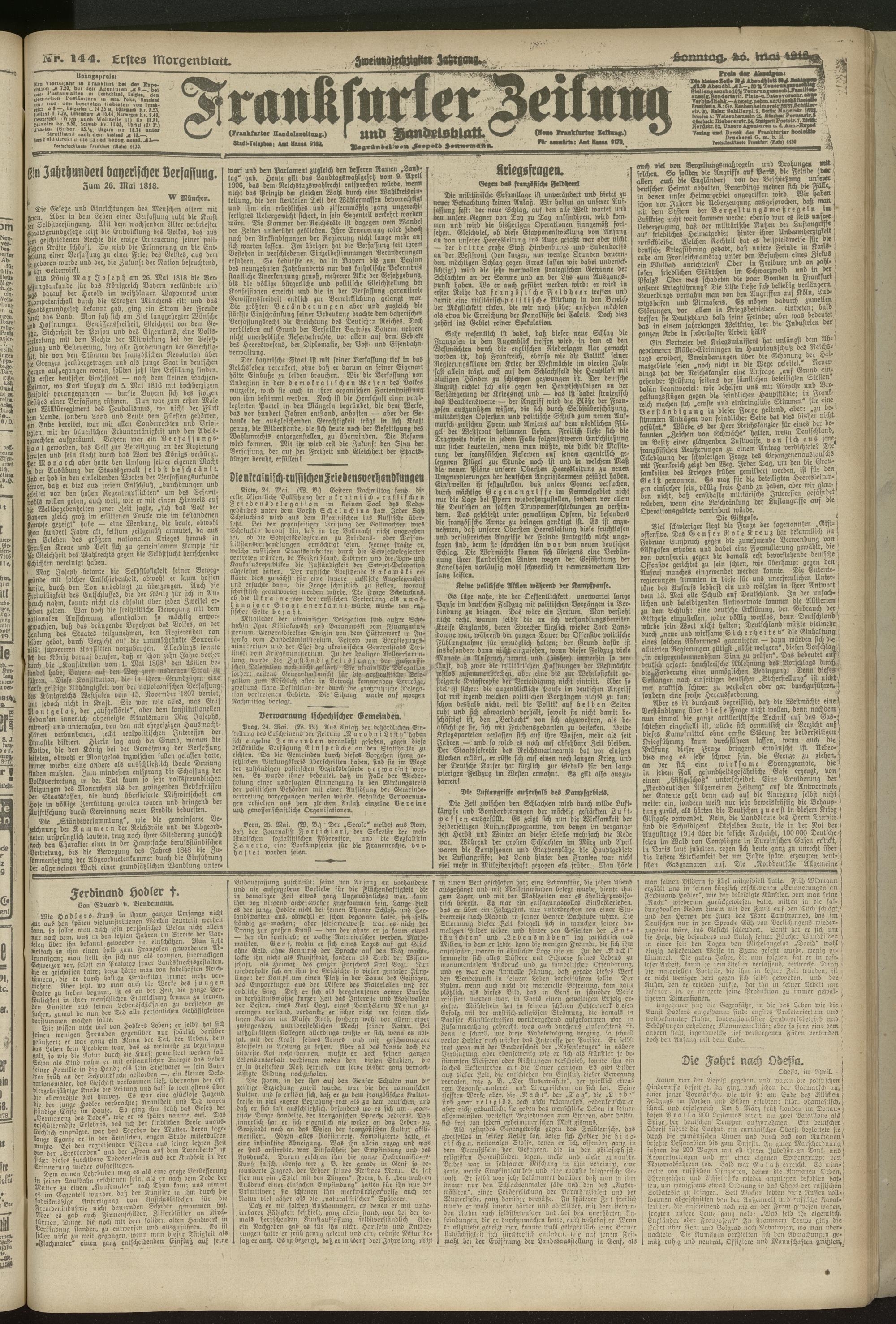 26.05.1918 = Nr. 144. Erstes Morgenblatt
