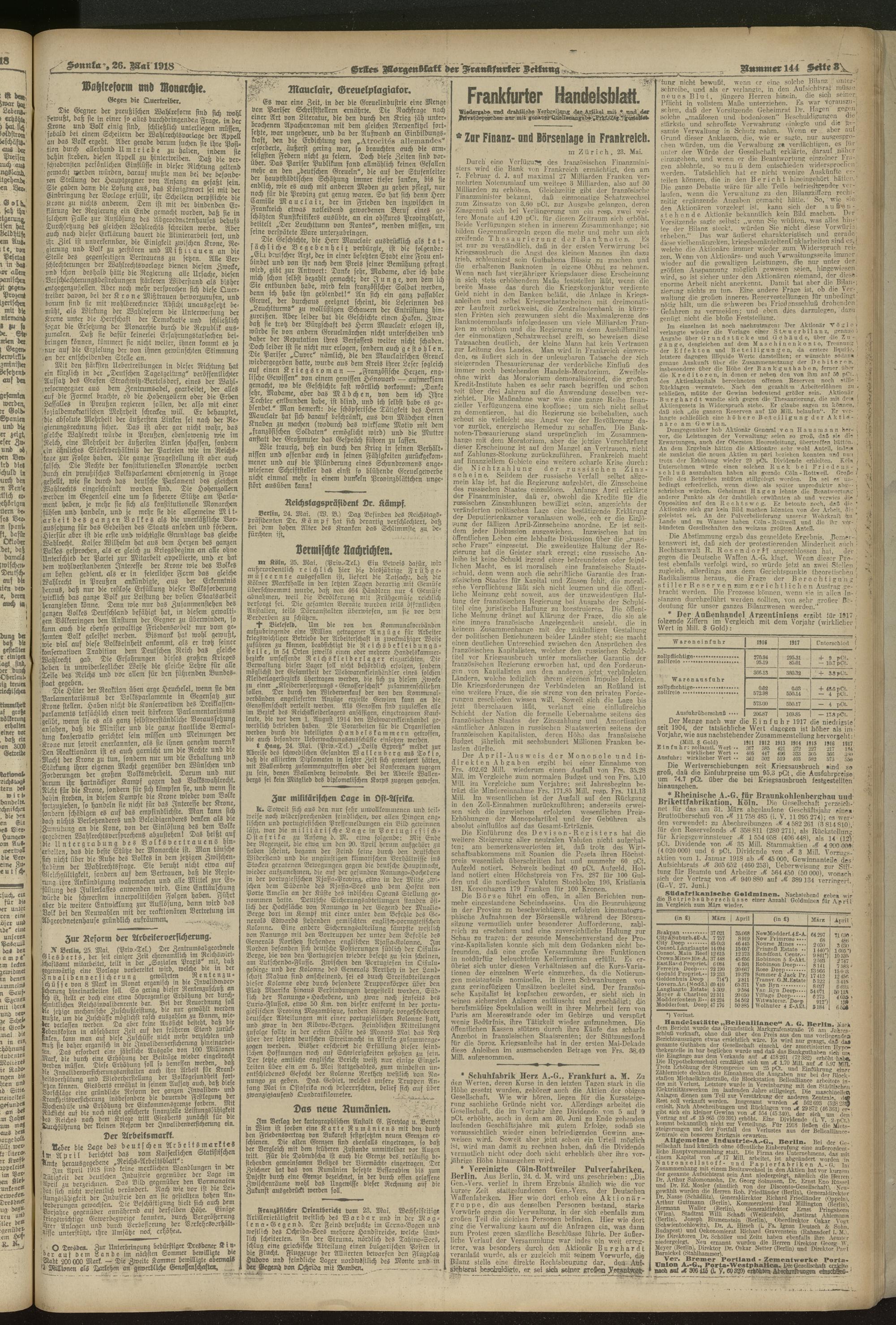 26.05.1918 = Nr. 144. Erstes Morgenblatt