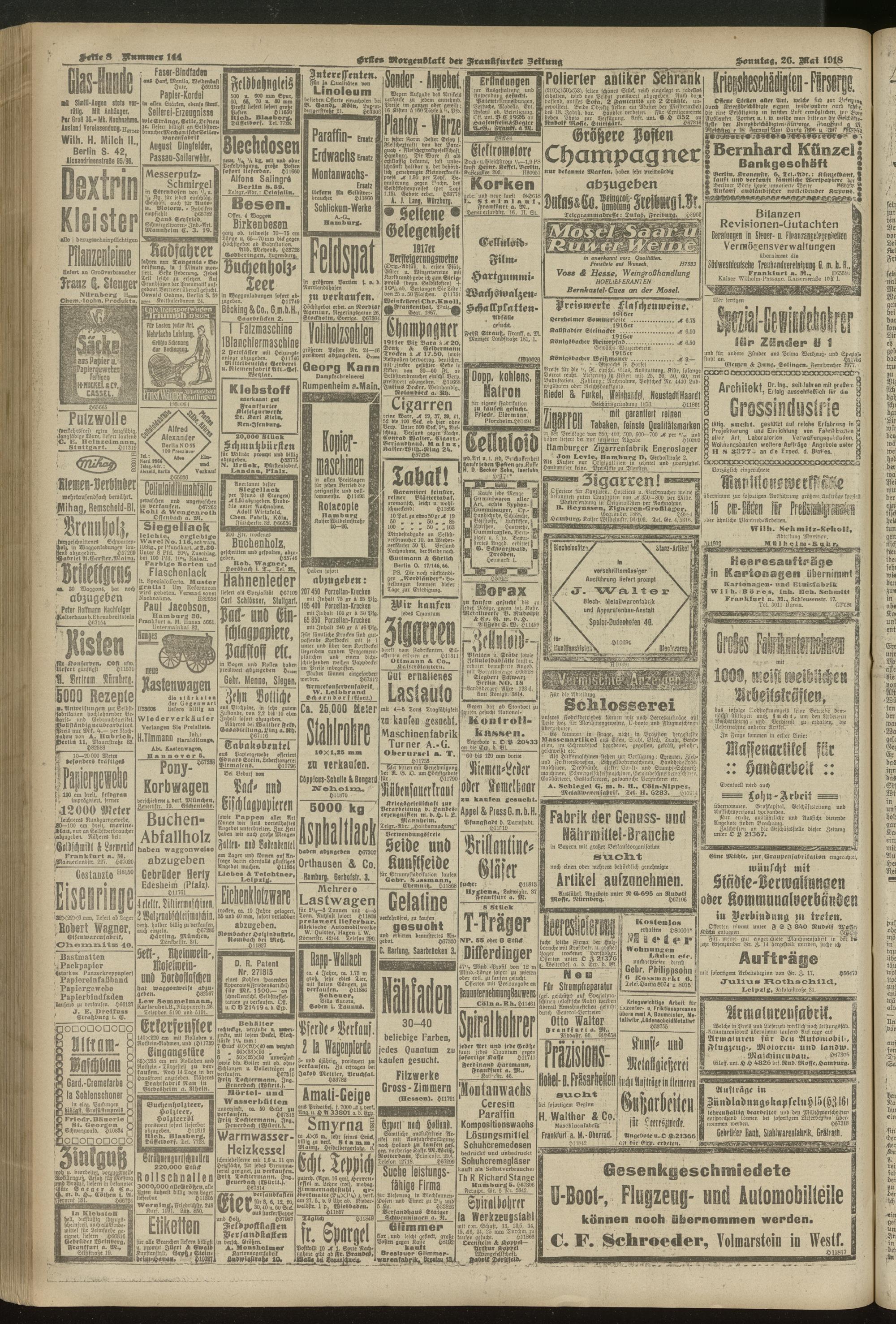 26.05.1918 = Nr. 144. Erstes Morgenblatt