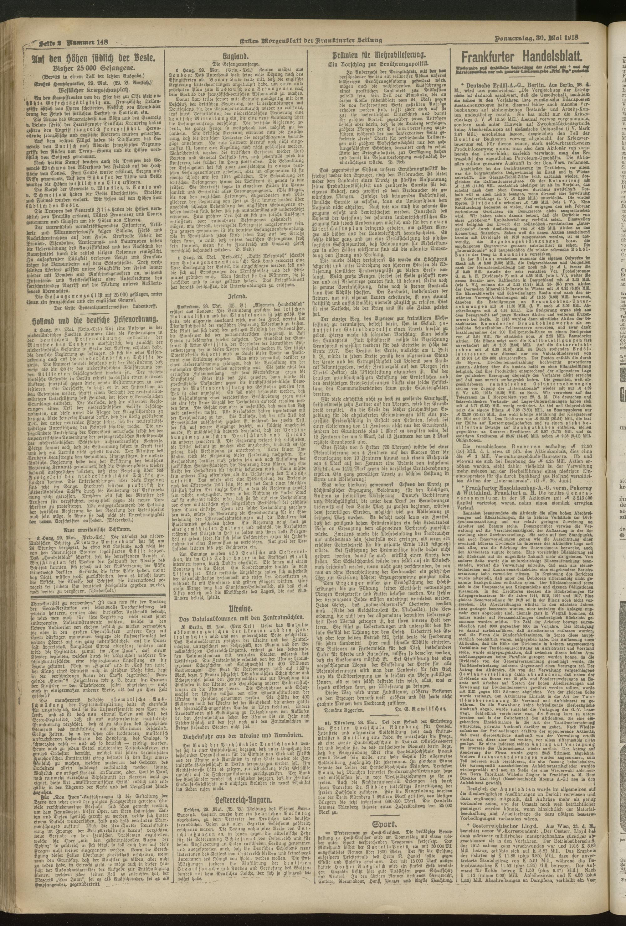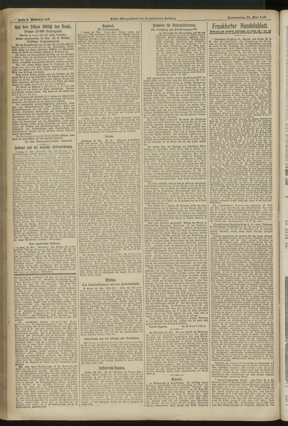 30.05.1918 = Nr. 148. Erstes Morgenblatt