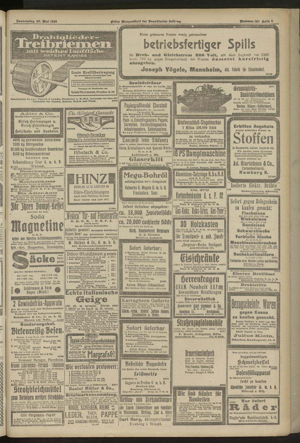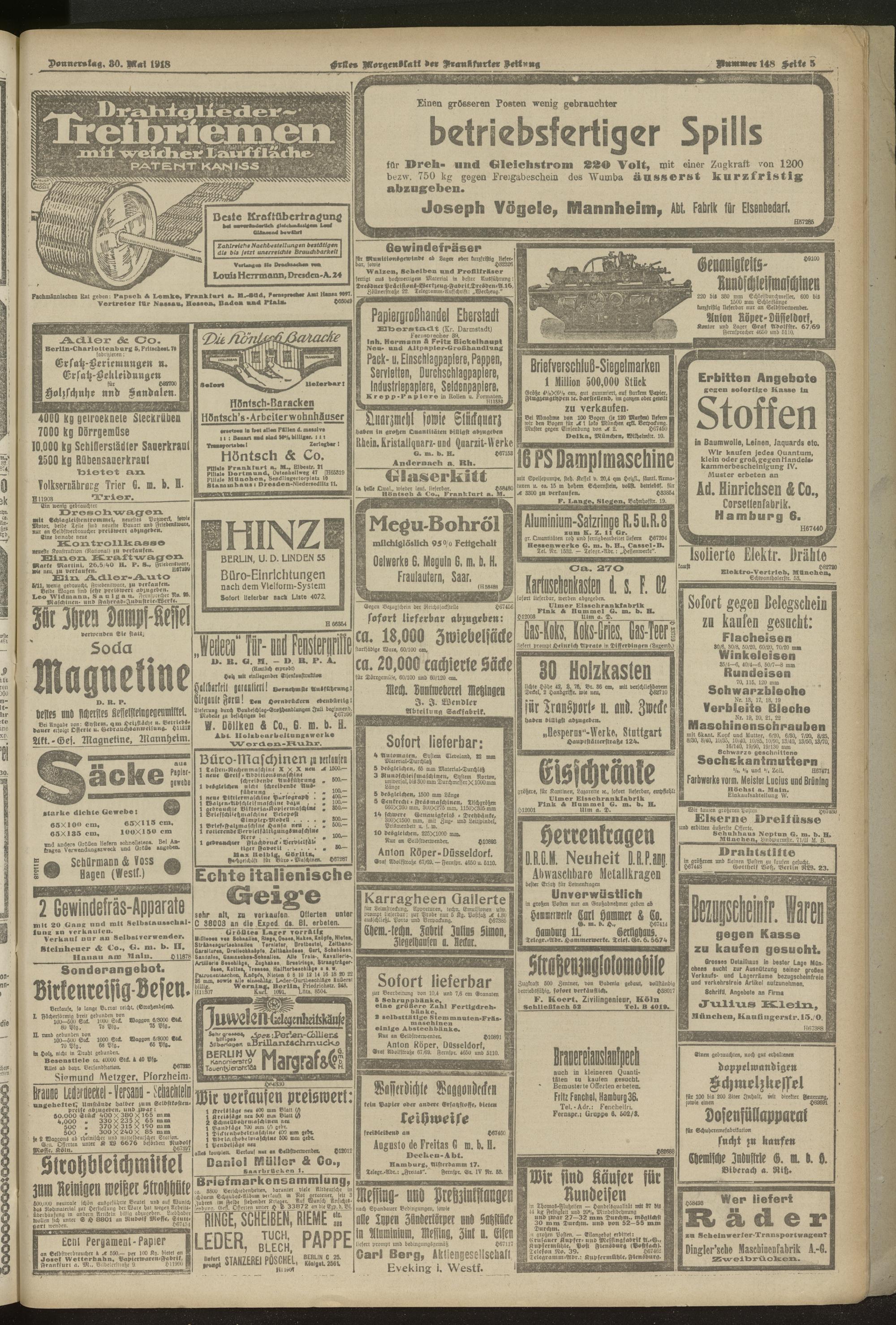 30.05.1918 = Nr. 148. Erstes Morgenblatt