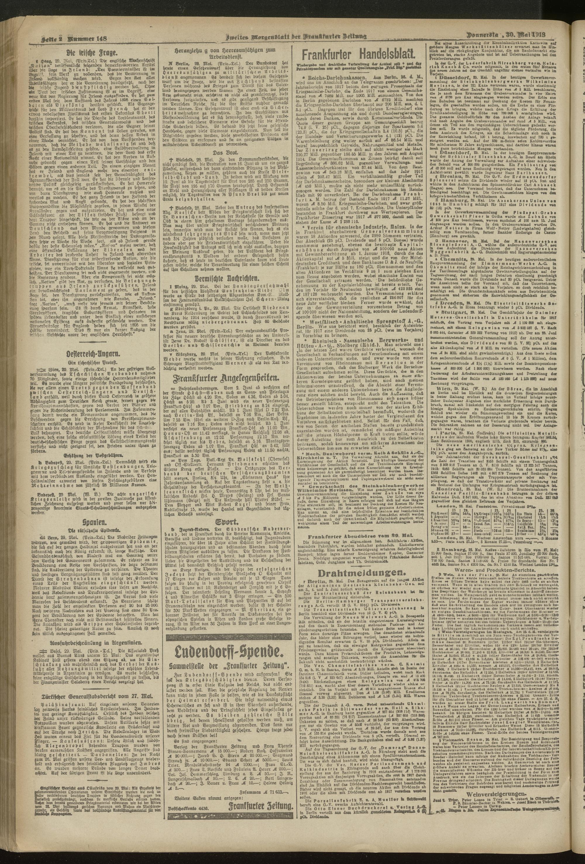 30.05.1918 = Nr. 148. Zweites Morgenblatt