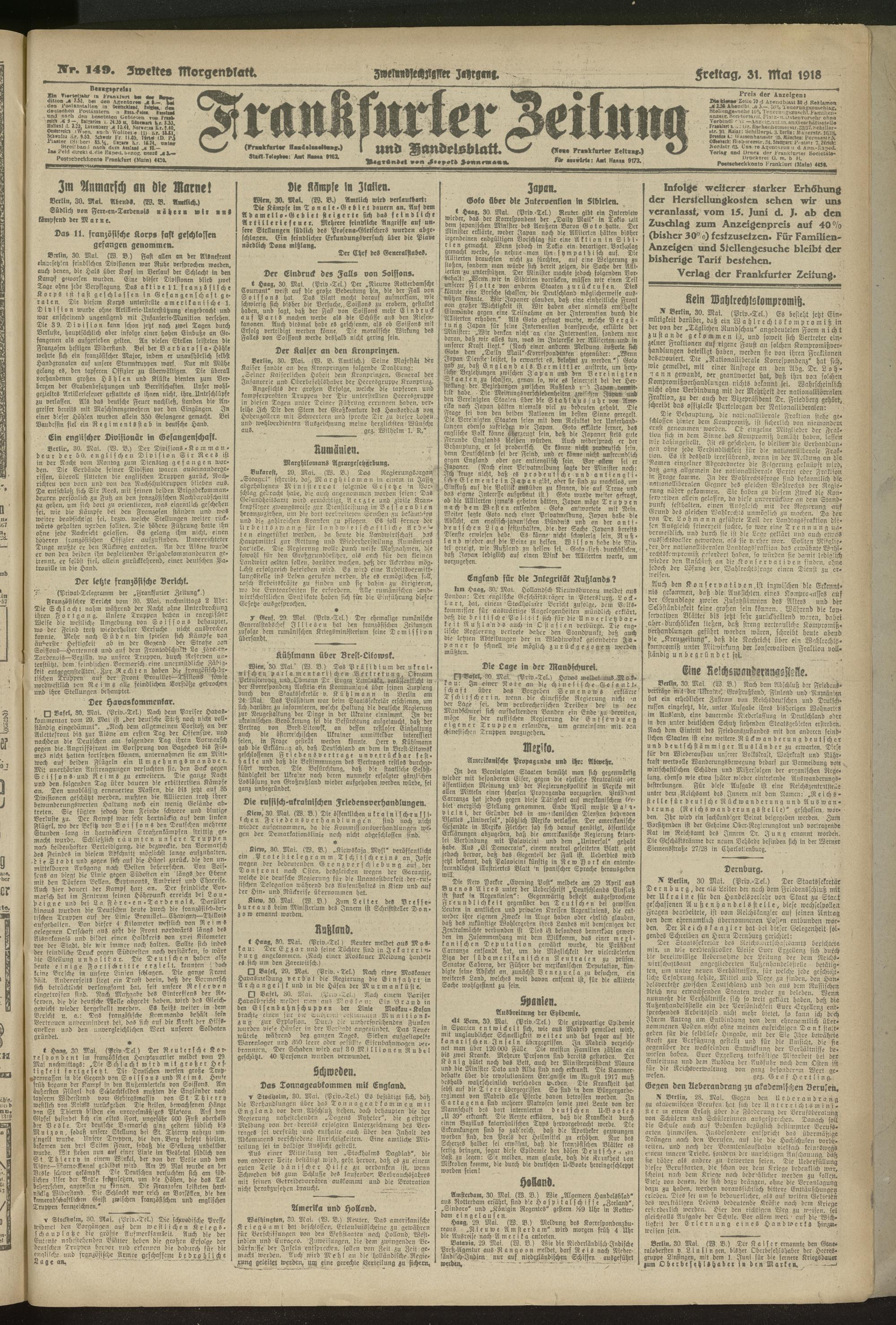 31.05.1918 = Nr. 149. Zweites Morgenblatt