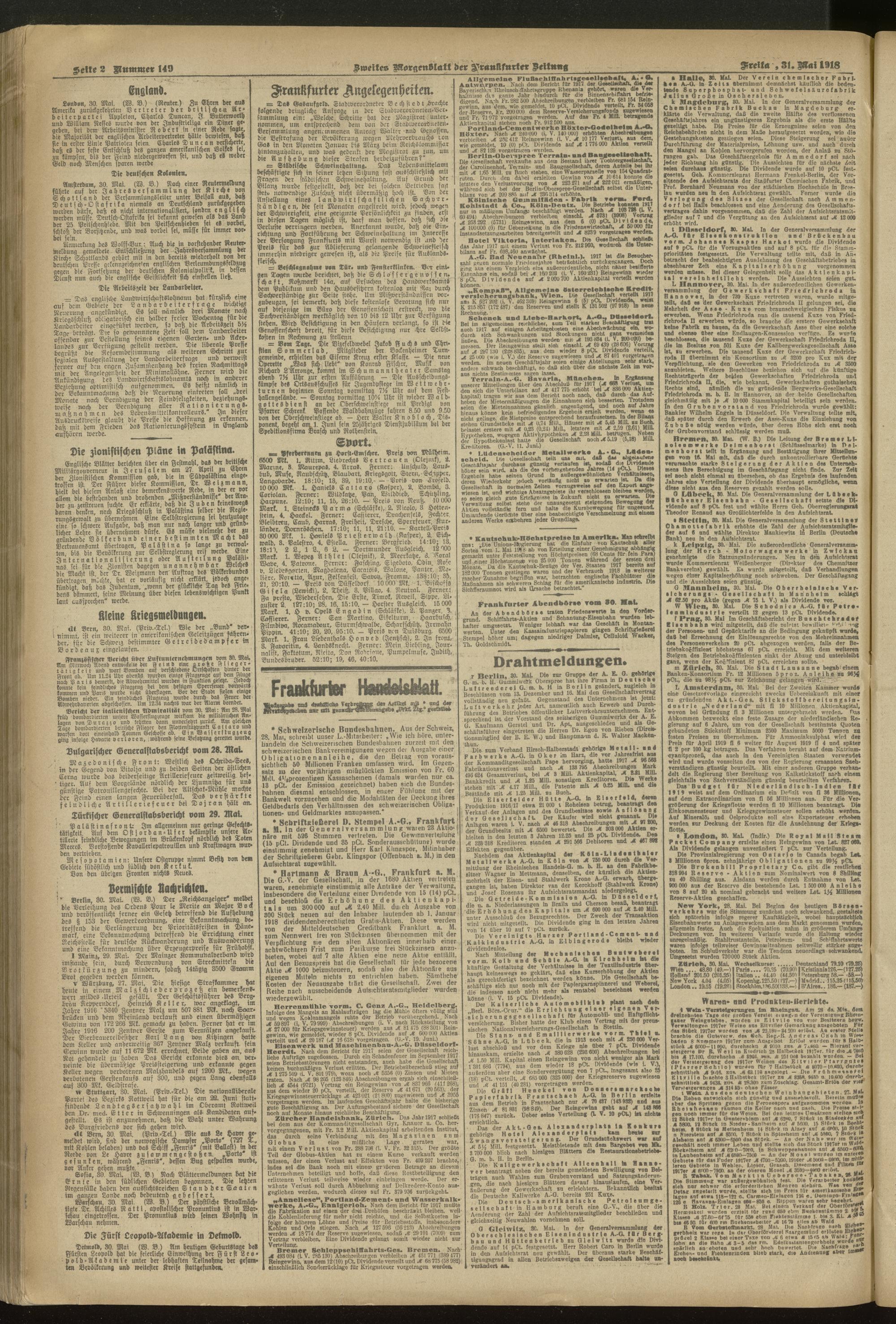 31.05.1918 = Nr. 149. Zweites Morgenblatt