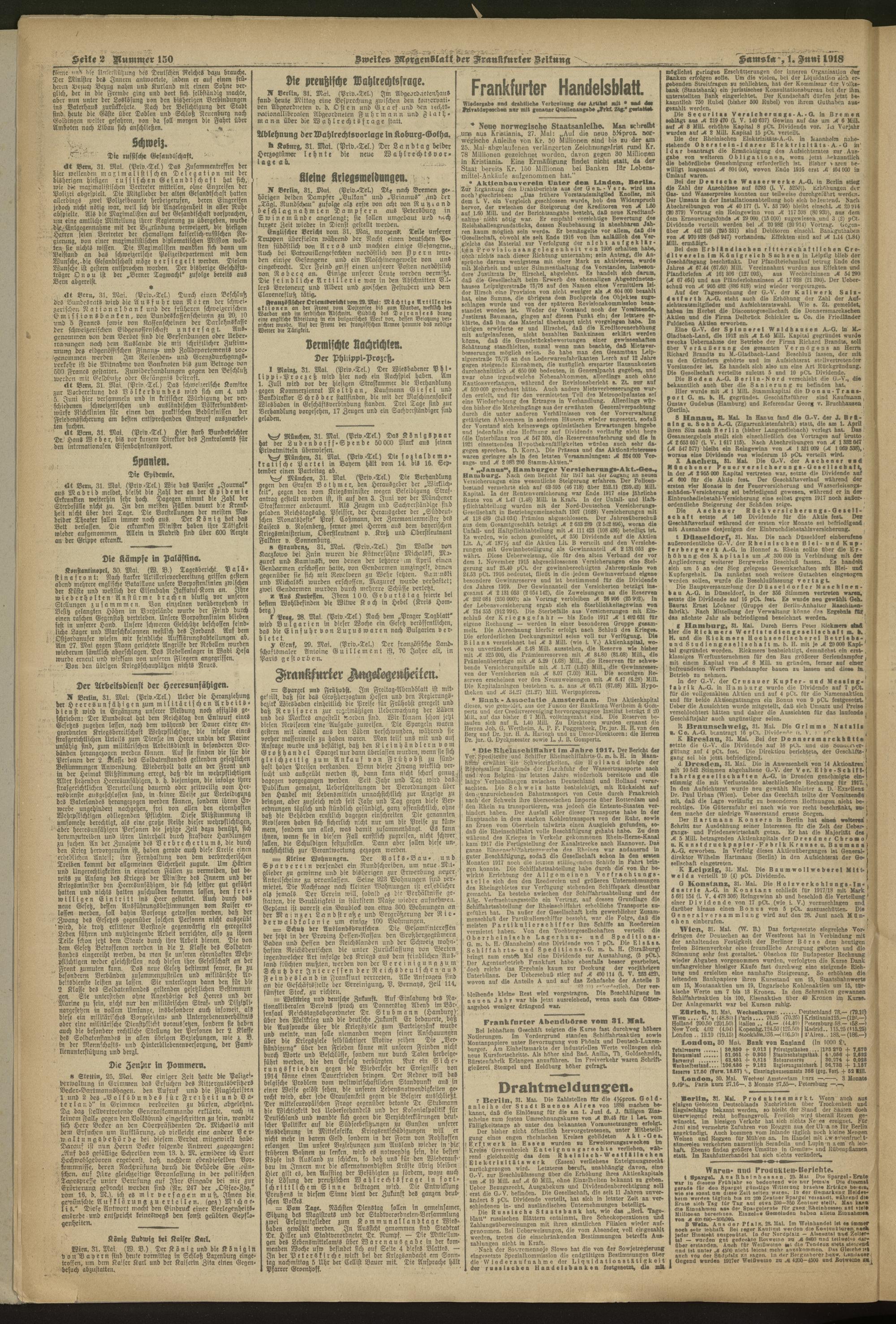 01.06.1918 = Nr. 150. Zweites Morgenblatt