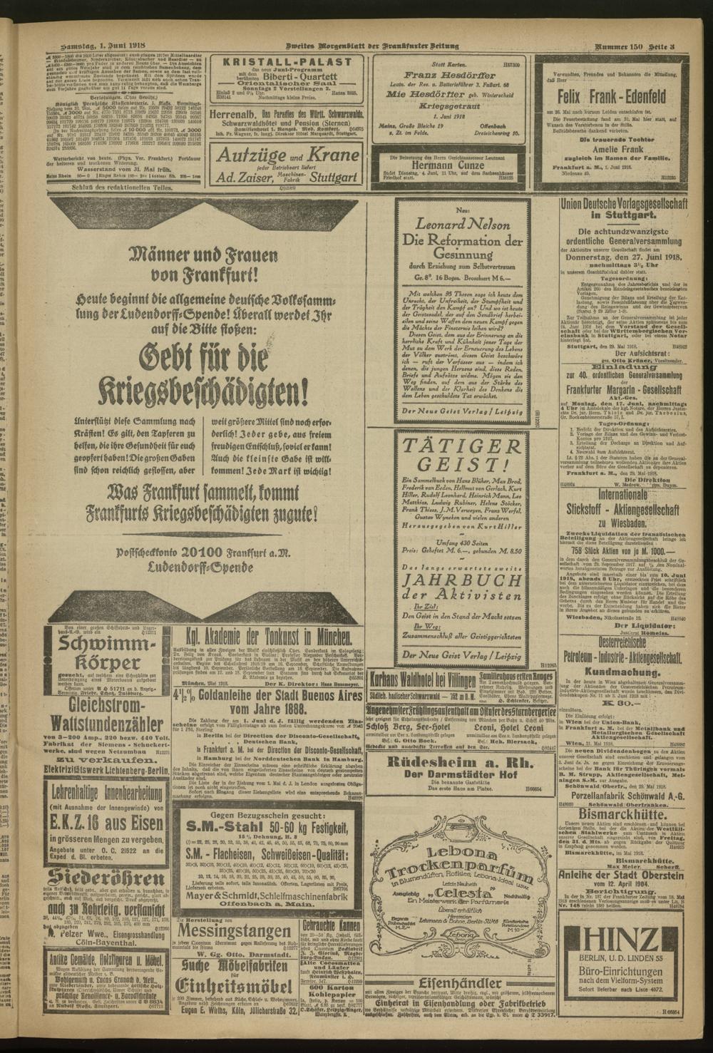 01.06.1918 = Nr. 150. Zweites Morgenblatt