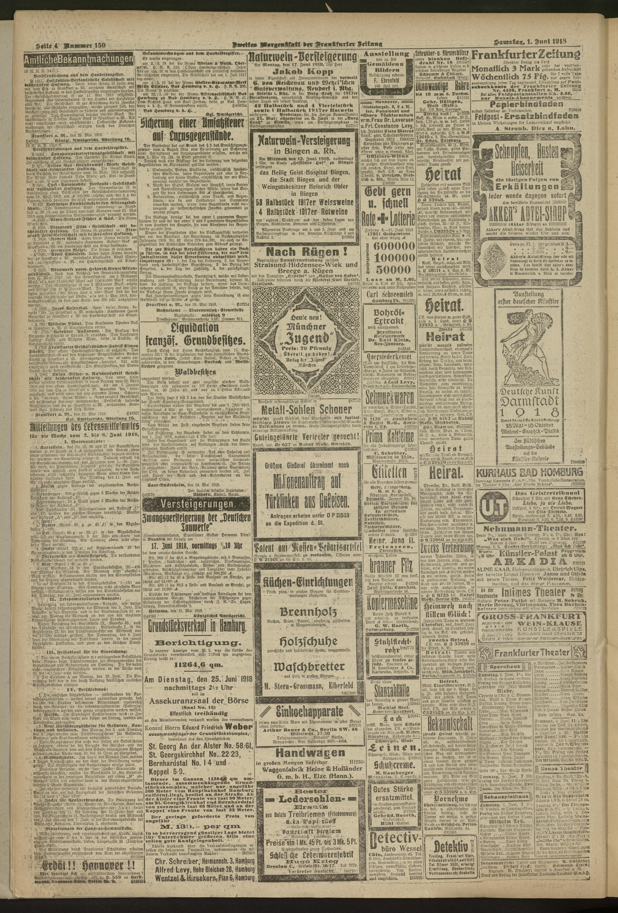 01.06.1918 = Nr. 150. Zweites Morgenblatt