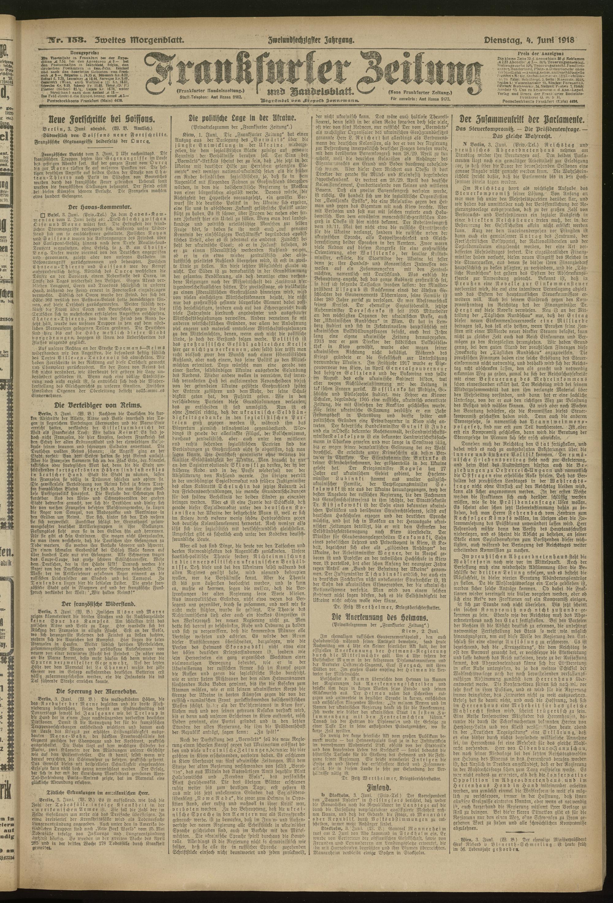 04.06.1918 = Nr. 153. Zweites Morgenblatt
