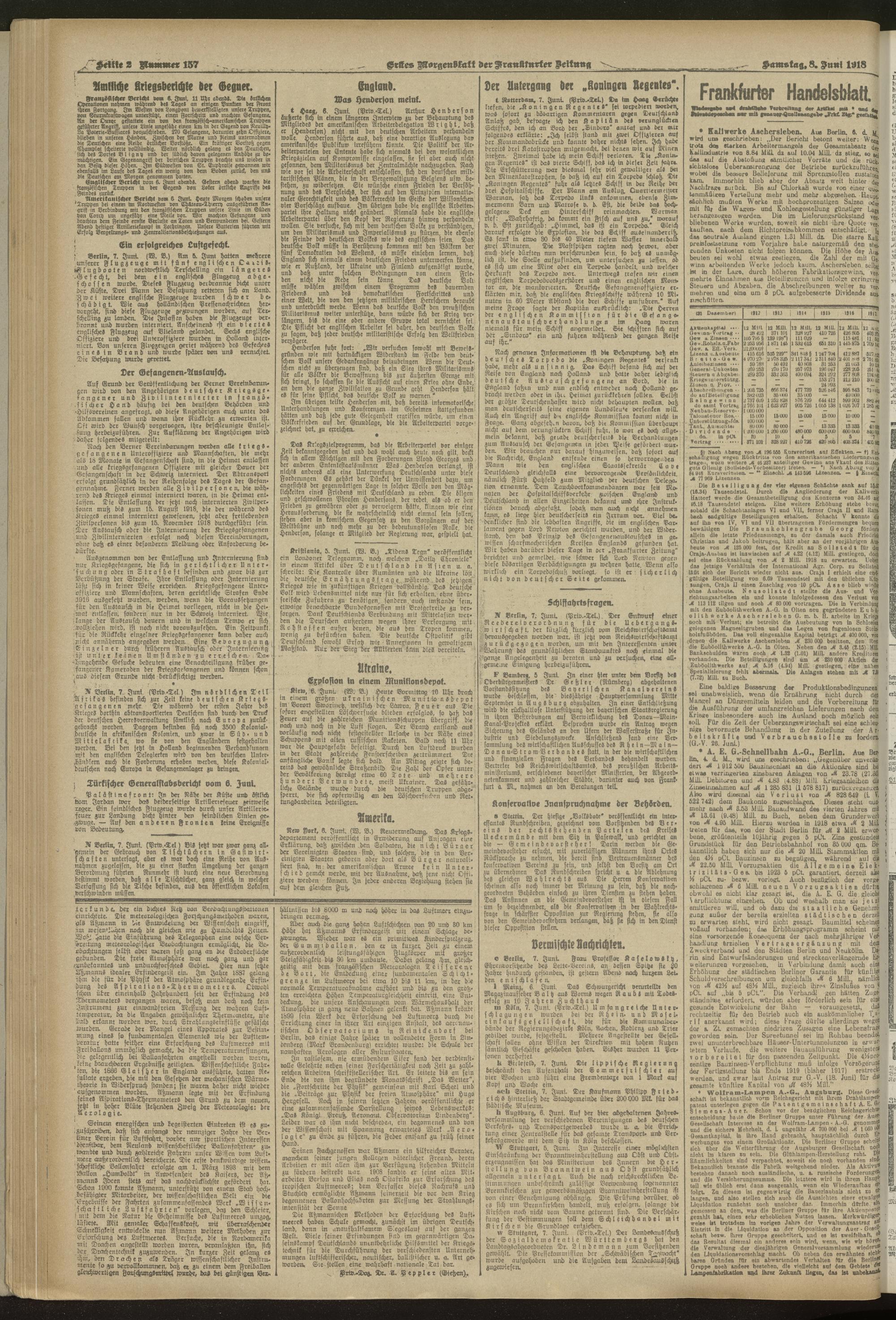 08.06.1918 = Nr. 157. Erstes Morgenblatt