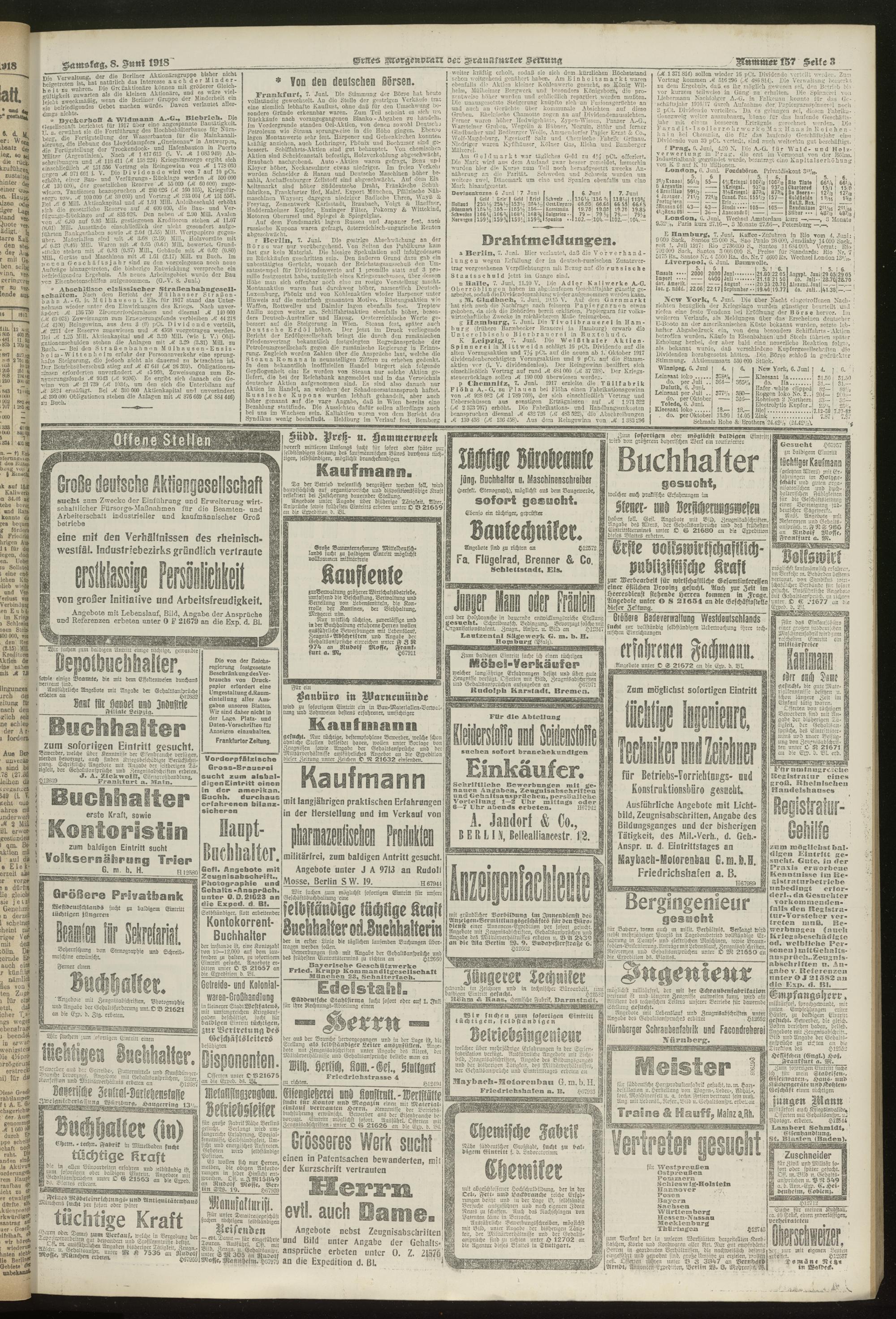 08.06.1918 = Nr. 157. Erstes Morgenblatt