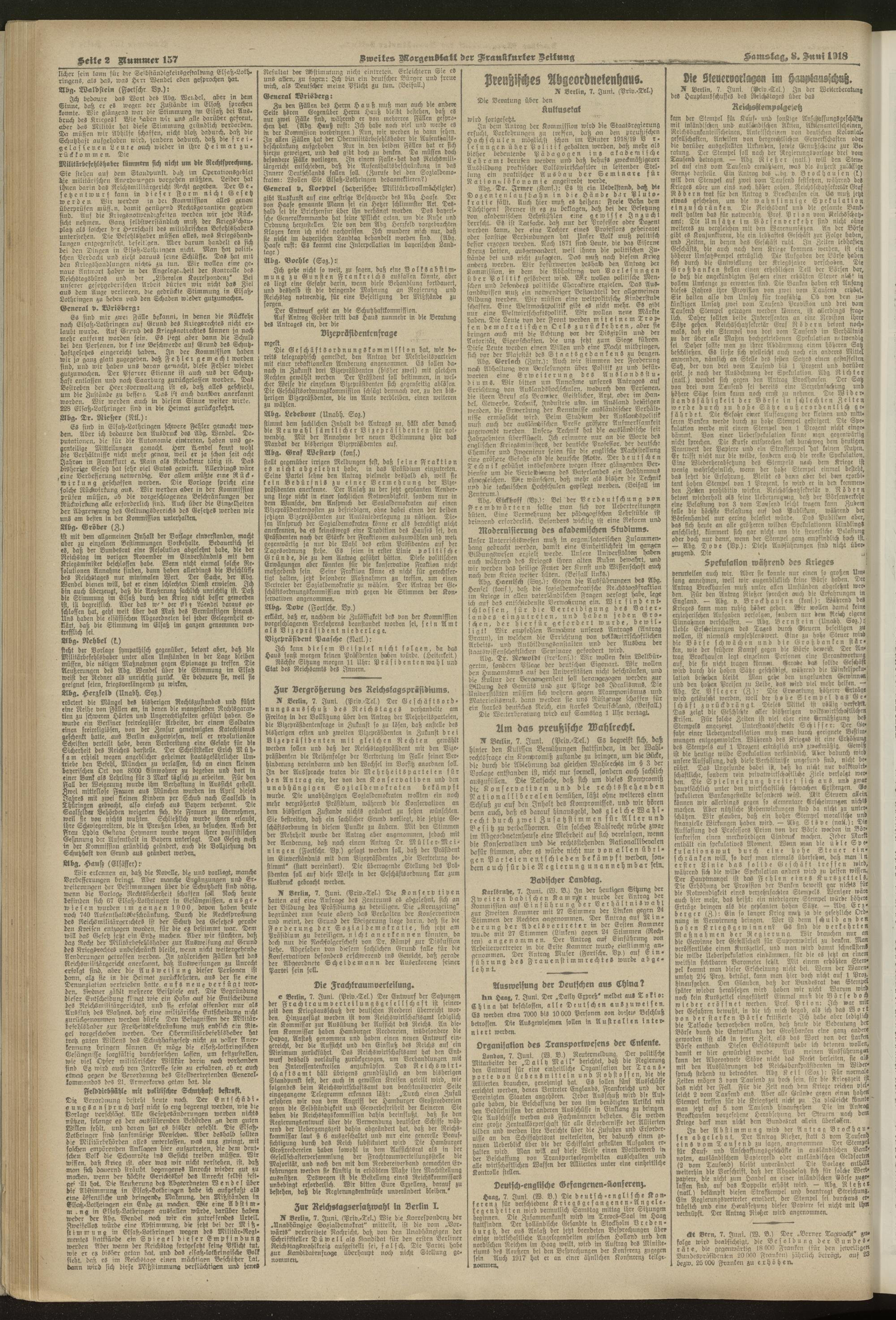 08.06.1918 = Nr. 157. Zweites Morgenblatt