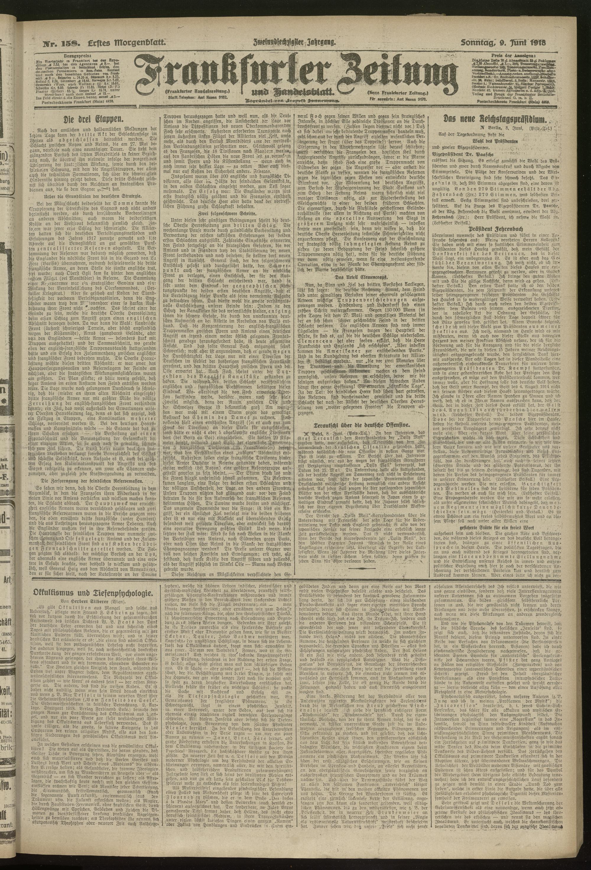 09.06.1918 = Nr. 158. Erstes Morgenblatt