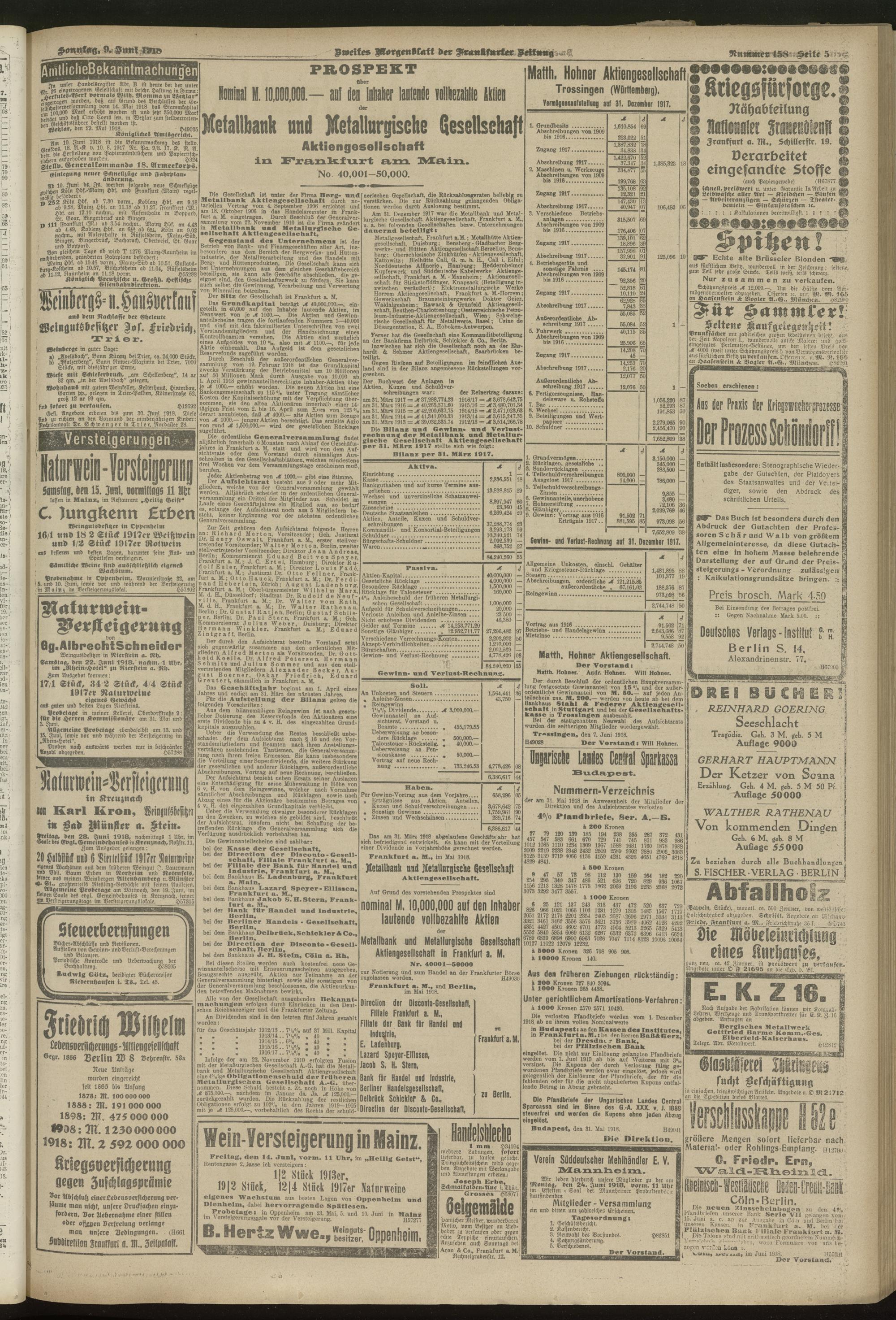 09.06.1918 = Nr. 158. Zweites Morgenblatt