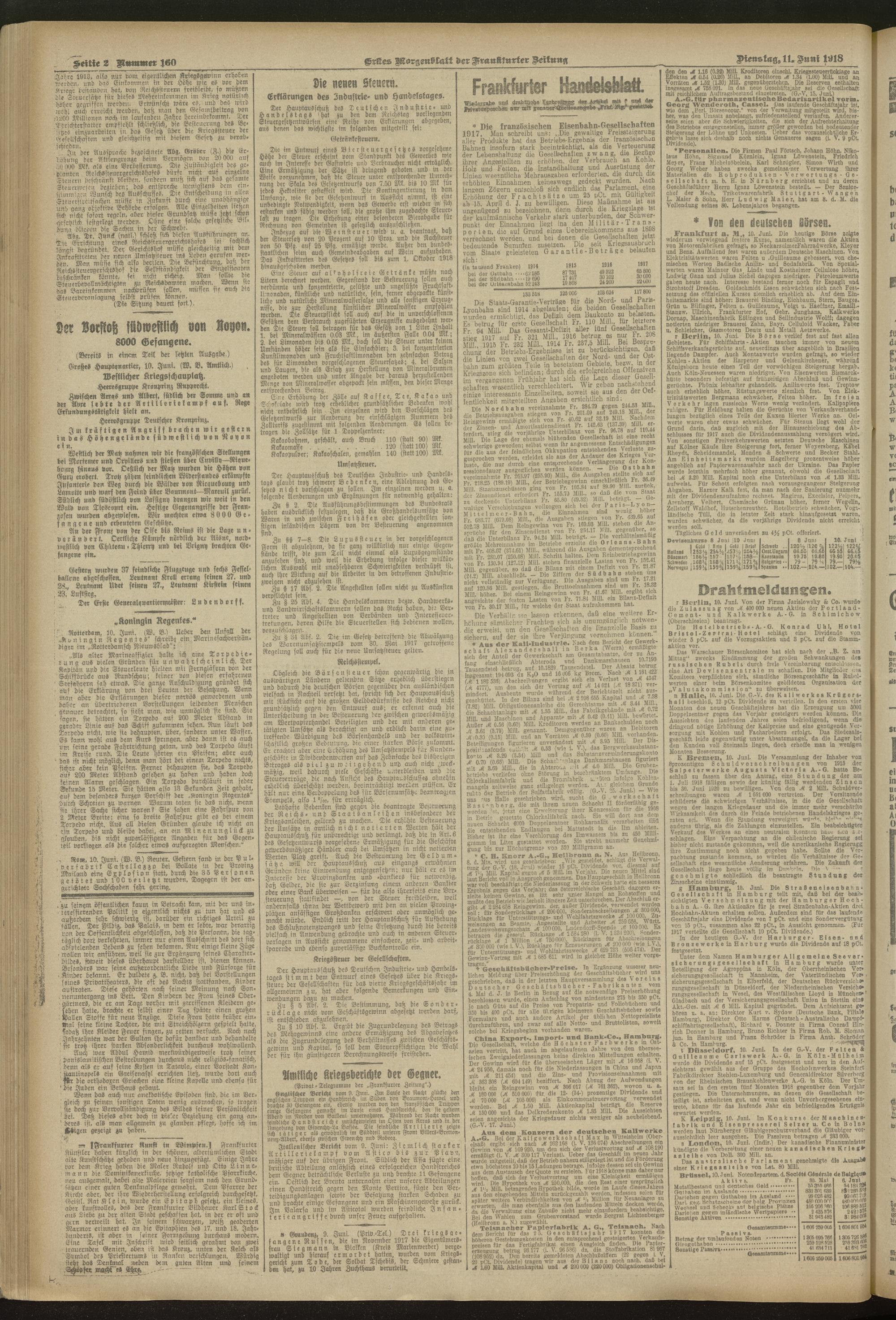 11.06.1918 = Nr. 160. Erstes Morgenblatt