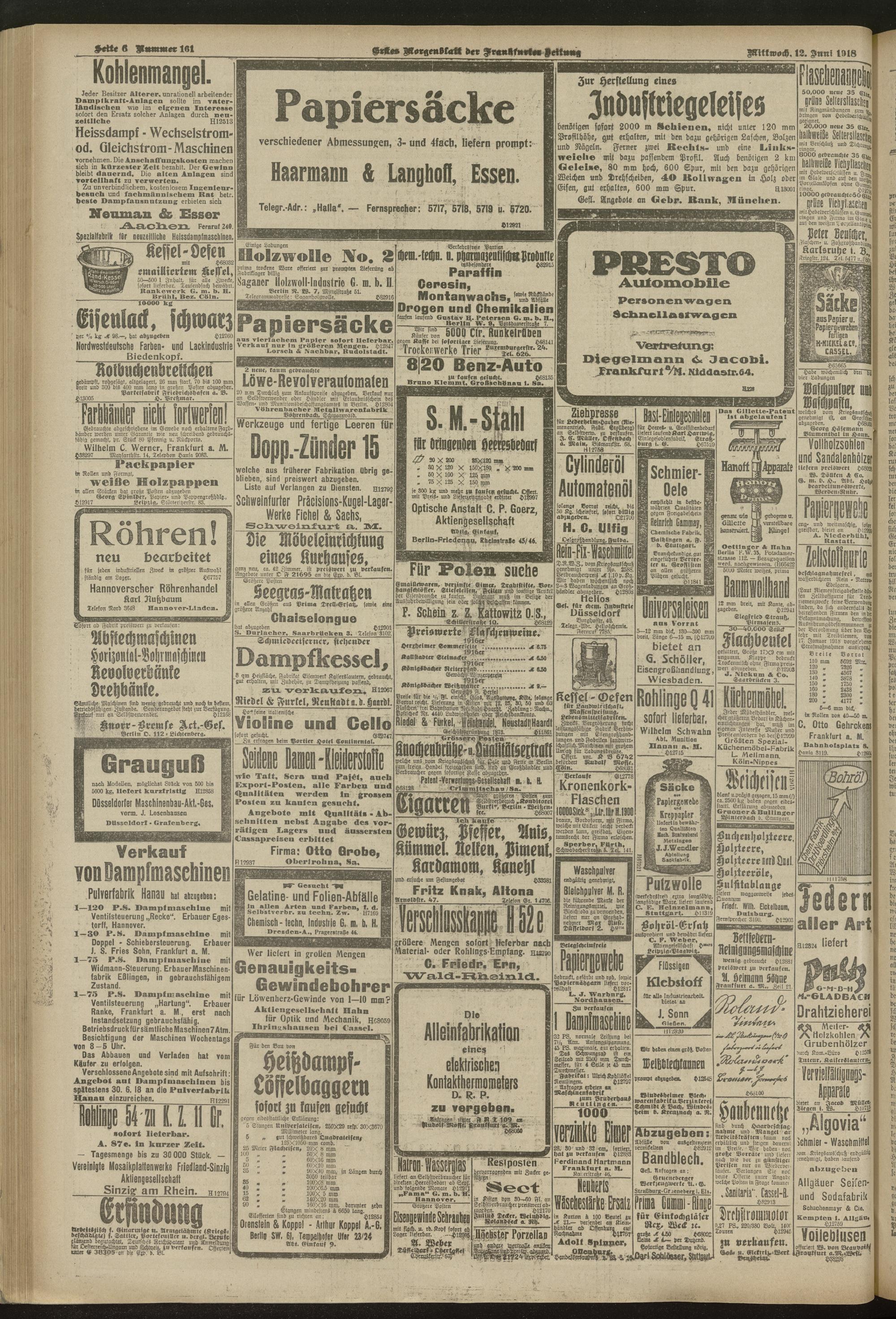 12.06.1918 = Nr. 161. Erstes Morgenblatt