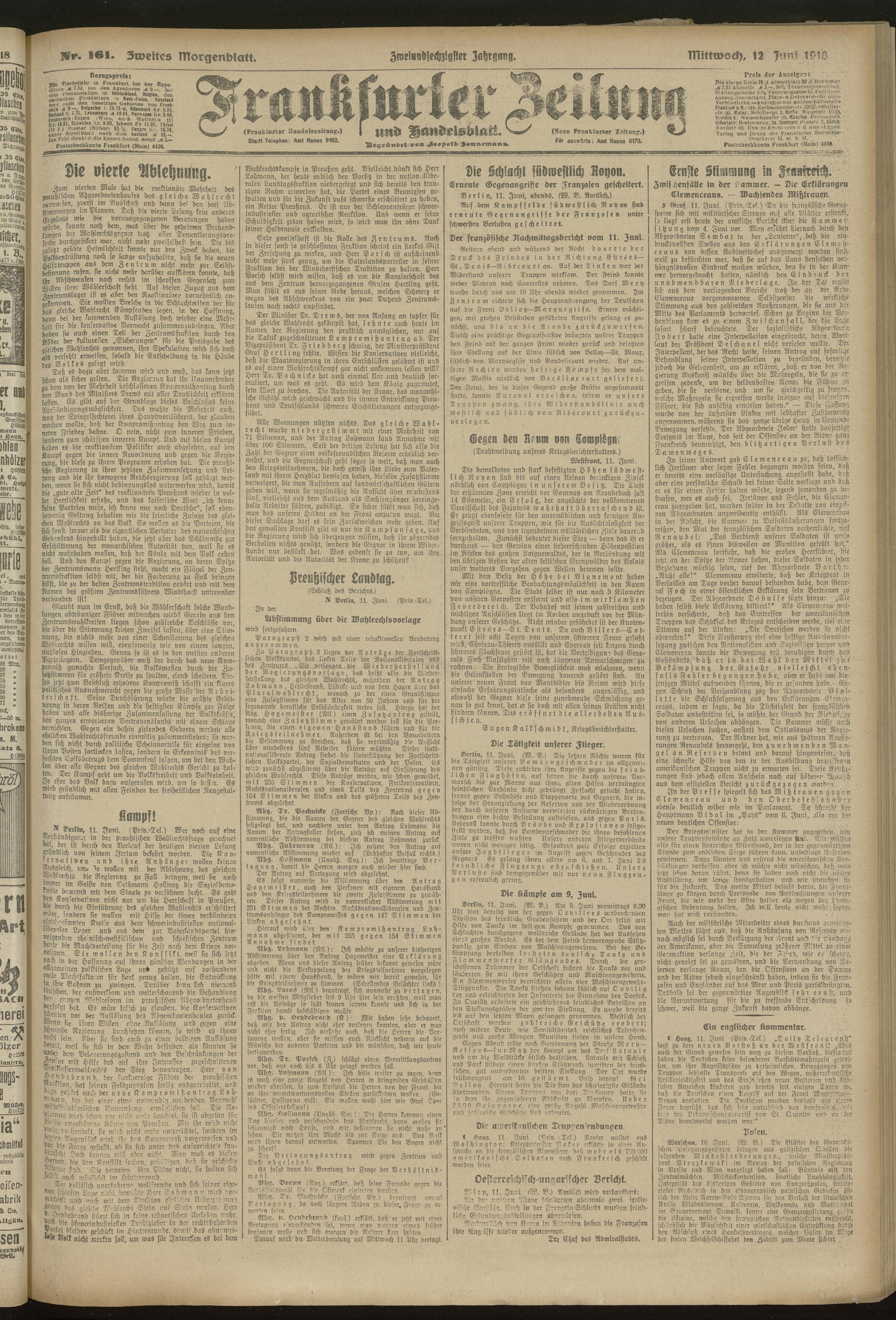 12.06.1918 = Nr. 161. Zweites Morgenblatt