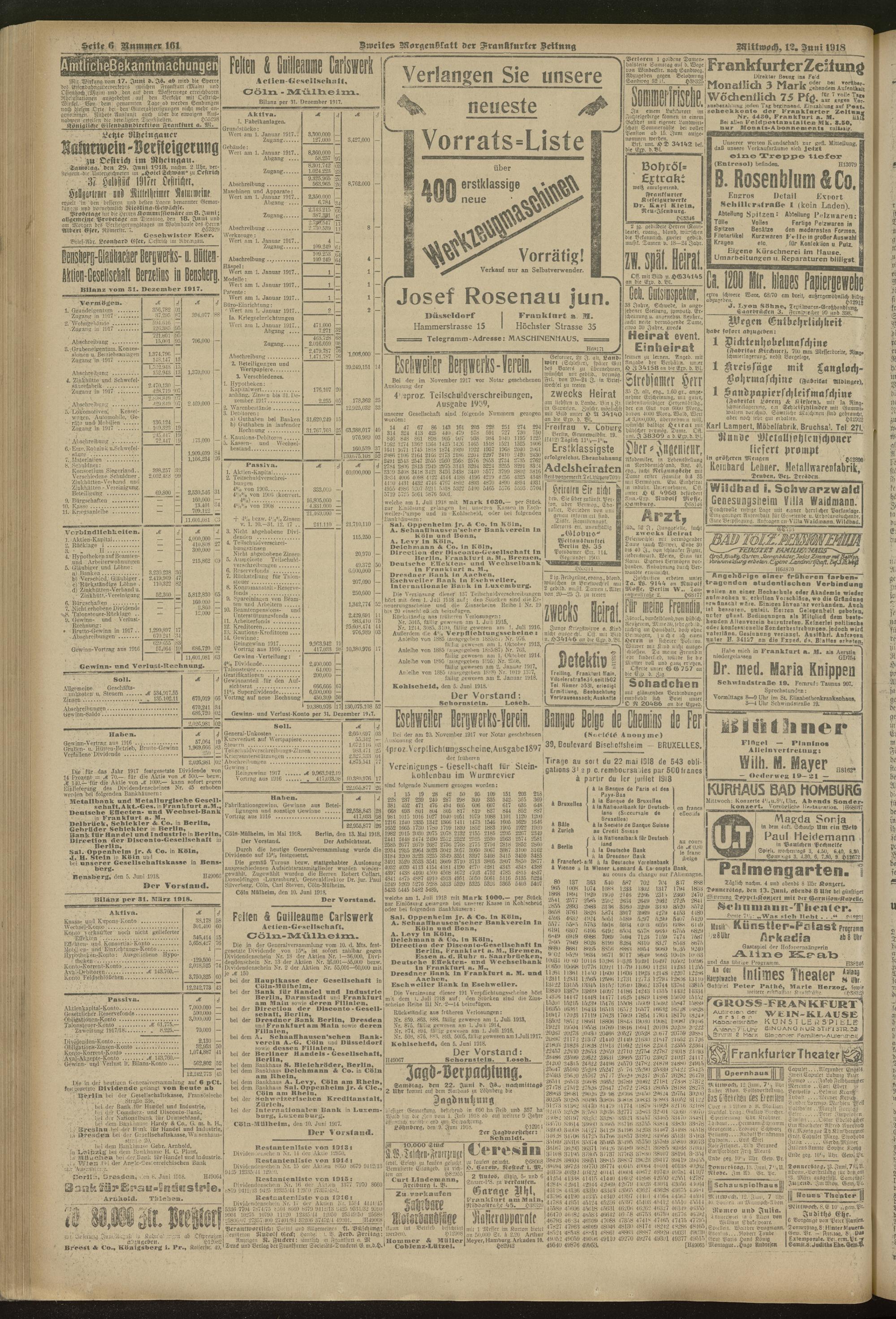 12.06.1918 = Nr. 161. Zweites Morgenblatt