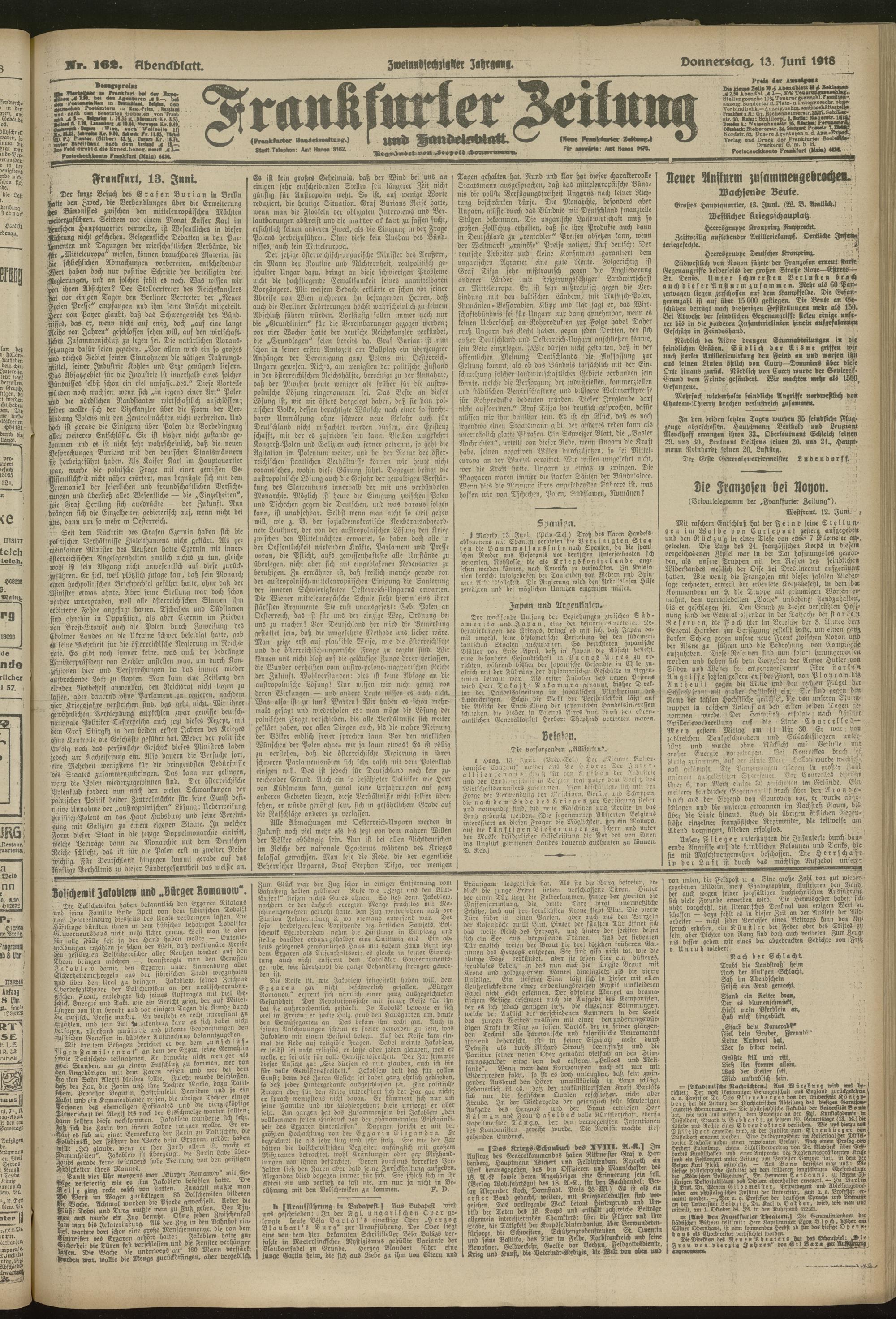 13.06.1918 = Nr. 162. Abendblatt