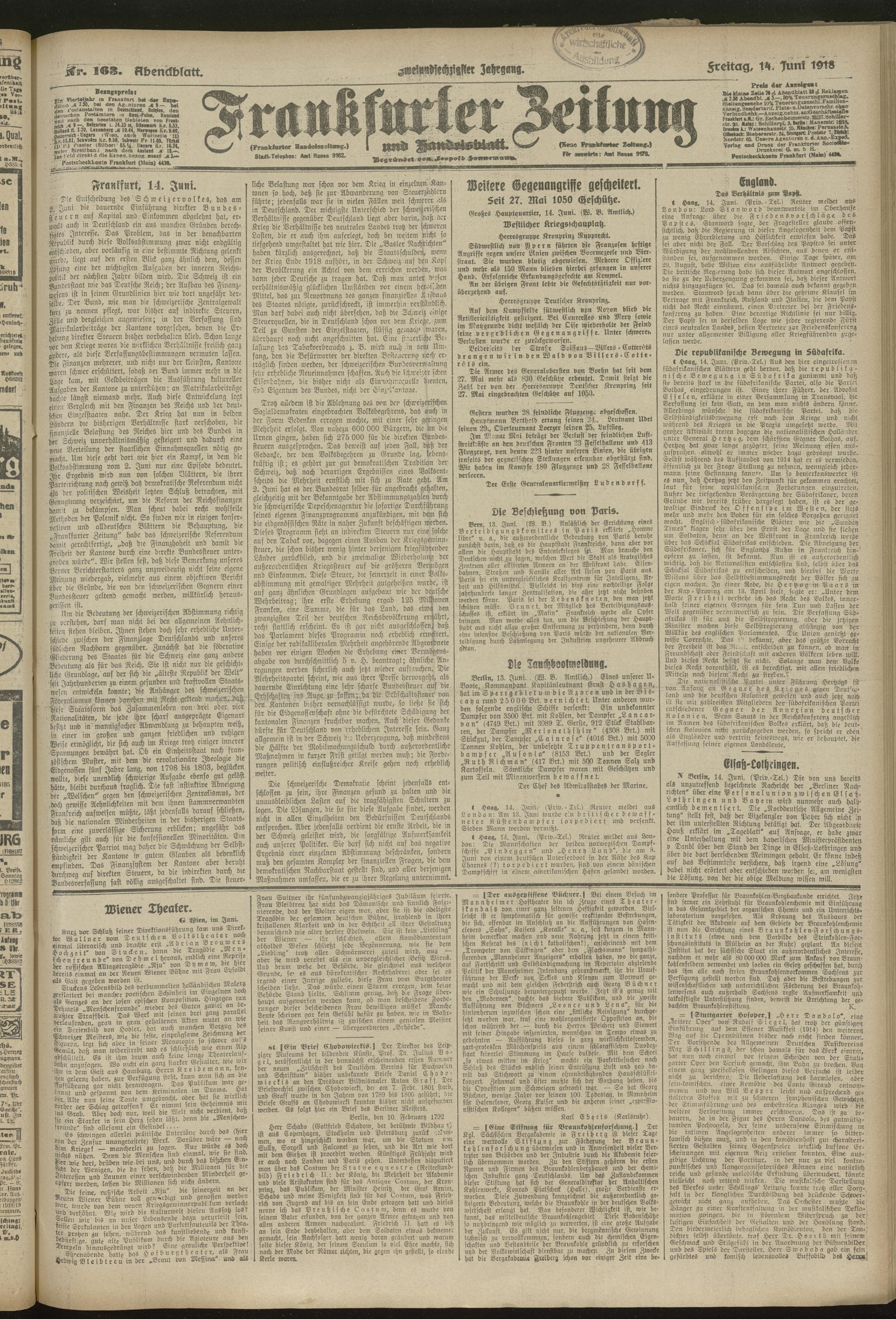 14.06.1918 = Nr. 163. Abendblatt