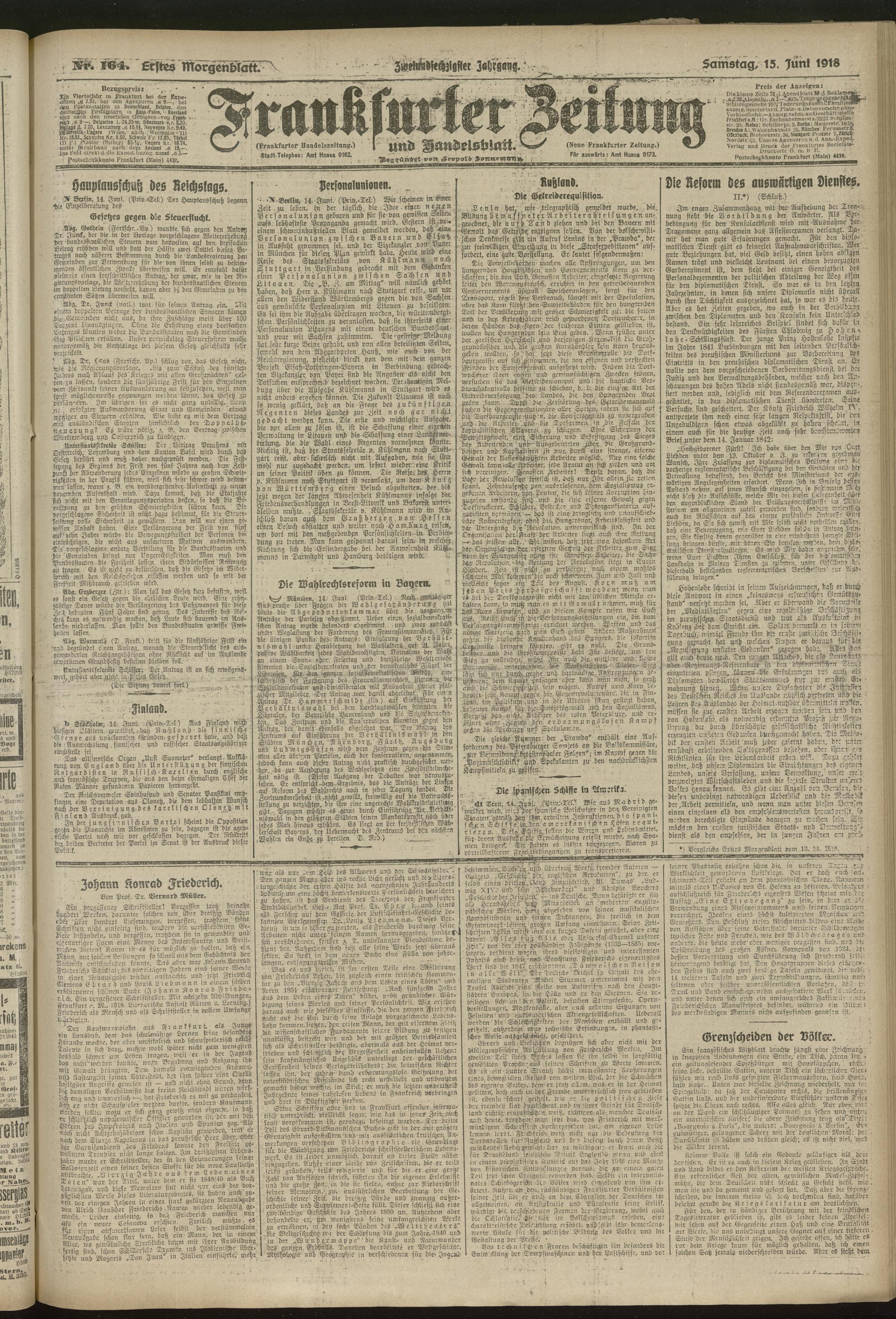 15.06.1918 = Nr. 164. Erstes Morgenblatt